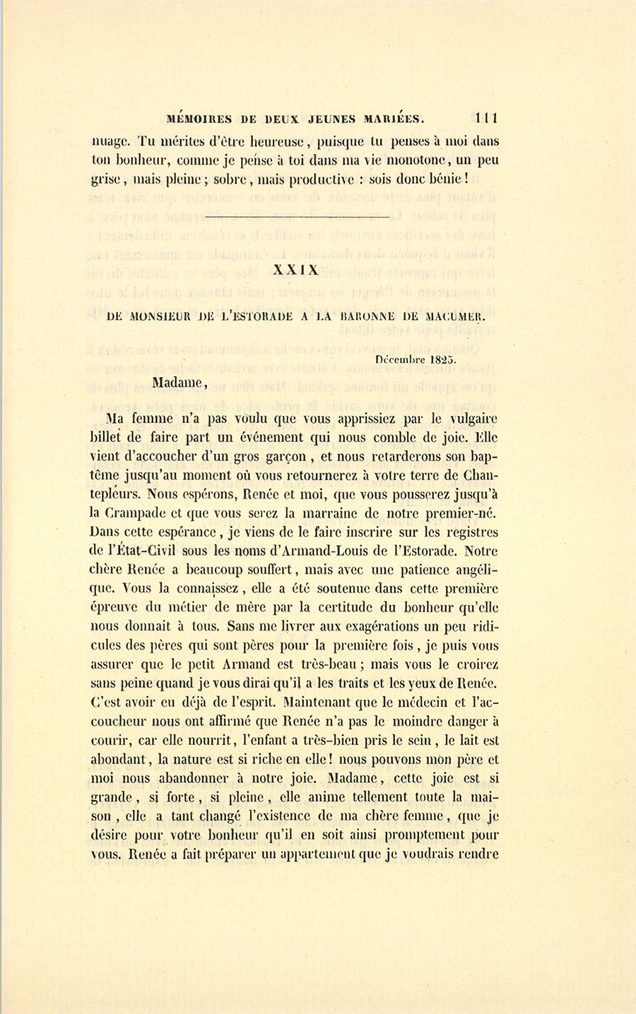 De madame de l’Estorade à mademoiselle de Chaulieu §