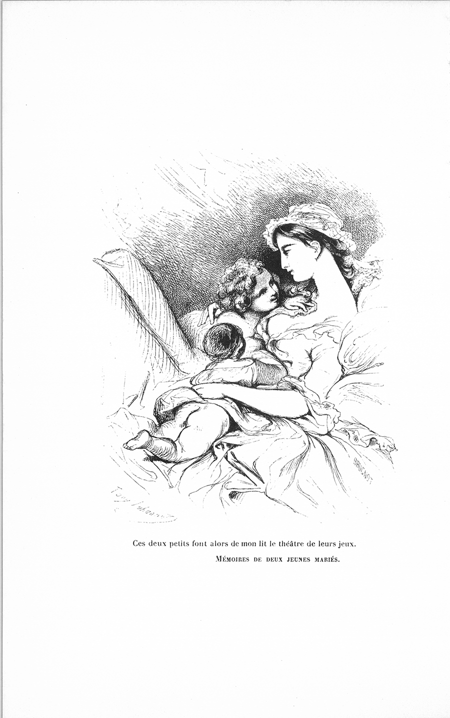 J’ai trente ans, voici le plus fort de la chaleur du jour passé, le plus difficile du chemin fini. Dans quelques années, je serai vieille femme, aussi puisé-je une force immense au sentiment des devoirs accomplis. On dirait que ces trois petits êtres connaissent ma pensée et s’y conforment. Il existe entre eux, qui ne m’ont jamais quittée, et moi, des rapports mystérieux. Enfin, ils m’accablent de jouissances, comme s’ils savaient tout ce qu’ils me doivent de dédommagements.