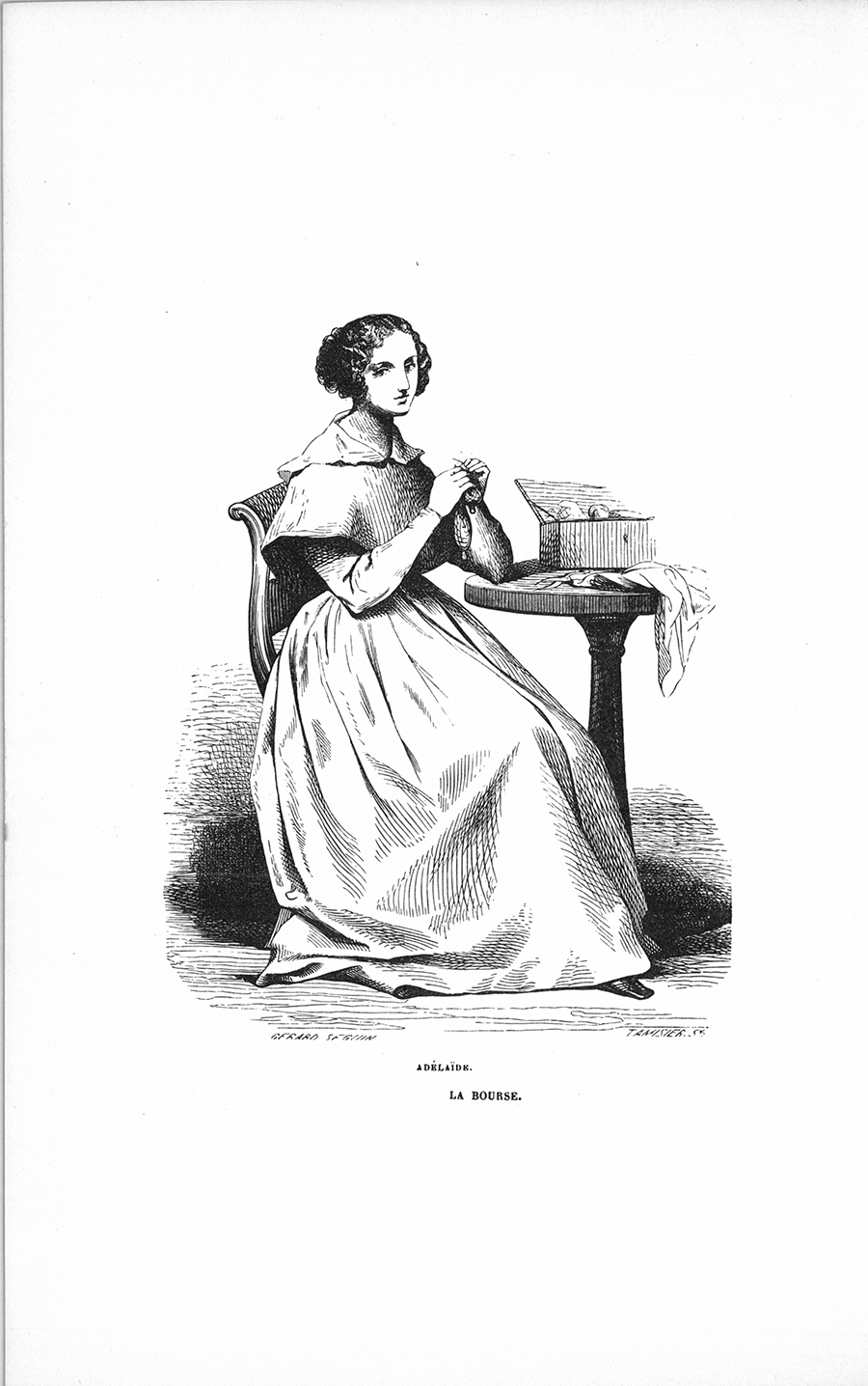 Cette phrase réveilla toutes les craintes du jeune peintre, qui rougit en regardant la mère d’Adélaïde ; mais il ne vit sur ce visage que l’expression d’une bonhomie sans fausseté : nulle arrière-pensée n’en détruisait le charme, la finesse n’en était point perfide, la malice en semblait douce, et nul remords n’en altérait le calme. Il se mit alors à la table de jeu. Adélaïde voulut partager le sort du peintre, en prétendant qu’il ne connaissait pas le piquet, et avait besoin d’un partner. Madame de Rouville et sa fille se firent, pendant la partie, des signes d’intelligence qui inquiétèrent d’autant plus Hippolyte qu’il gagnait ; mais à la fin, un dernier coup rendit les deux amants débiteurs de la baronne. En voulant chercher de la monnaie dans son gousset, le peintre retira ses mains de dessus la table, et vit alors devant lui une bourse qu’Adélaïde y avait glissée sans qu’il s’en aperçût ; la pauvre enfant tenait l’ancienne, et s’occupait par contenance à y chercher de l’argent pour payer sa mère. Tout le sang d’Hippolyte afflua si vivement à son cœur qu’il faillit perdre connaissance. La bourse neuve substituée à la sienne, et qui contenait ses quinze louis, était brodée en perles d’or. Les coulants, les glands, tout attestait le bon goût d’Adélaïde, qui sans doute avait épuisé son pécule aux ornements de ce charmant ouvrage. Il était impossible de dire avec plus de finesse que le don du peintre ne pouvait être récompensé que par un témoignage de tendresse. Quand Hippolyte, accablé de bonheur, tourna les yeux sur Adélaïde et sur la baronne, il les vit tremblantes de plaisir et heureuses de cette aimable supercherie. Il se trouva petit, mesquin, niais ; il aurait voulu pouvoir se punir, se déchirer le cœur. Quelques larmes lui vinrent aux yeux, il se leva par un mouvement irrésistible, prit Adélaïde dans ses bras, la serra contre son cœur, {p. 167}lui ravit un baiser ; puis, avec une bonne foi d’artiste : – Je vous la demande pour femme, s’écria-t-il en regardant la baronne.