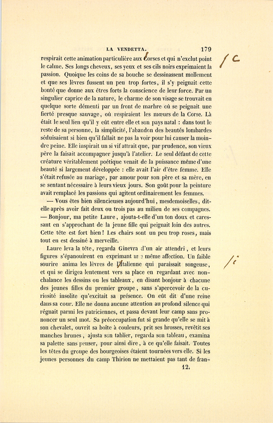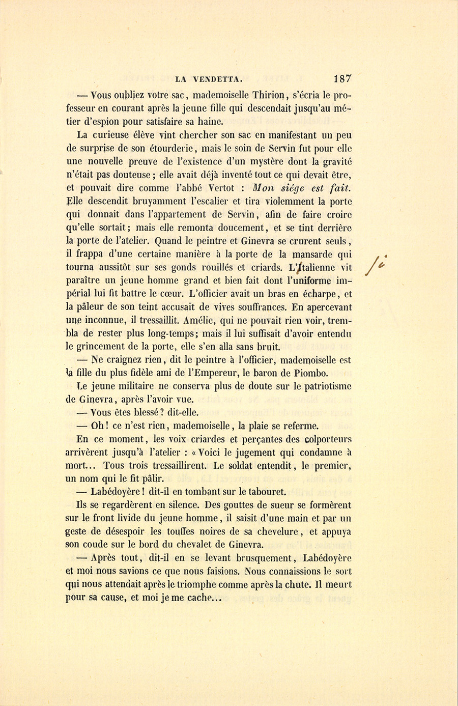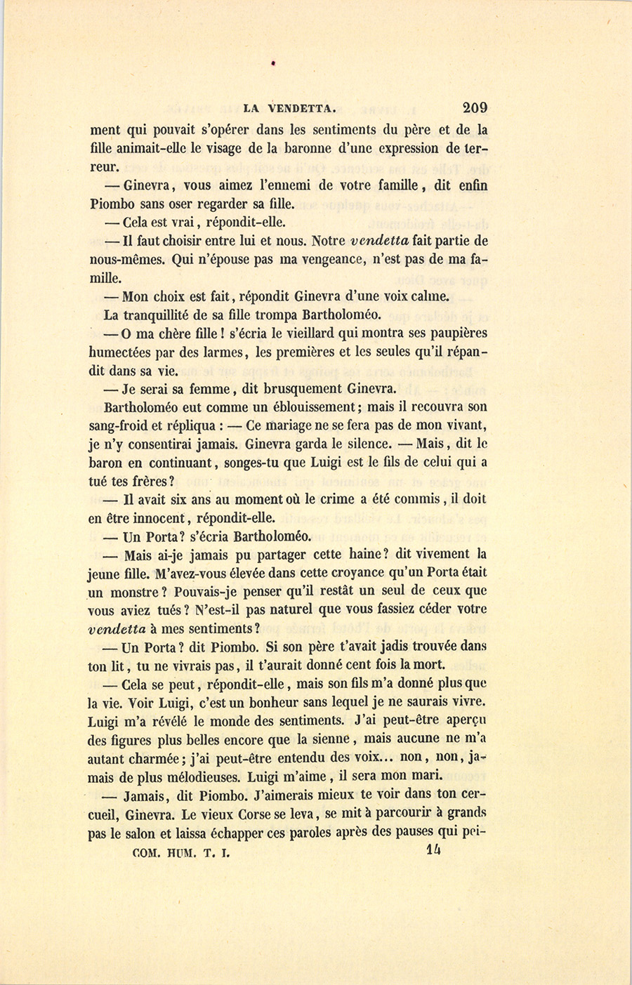 – Mais je puis fermer les yeux, reprit Bonaparte. Le préjugé de la Vendetta empêchera long-temps le règne des lois en Corse, {p. 172} ajouta-t-il en se parlant à lui-même. Il faut cependant le détruire à tout prix.
