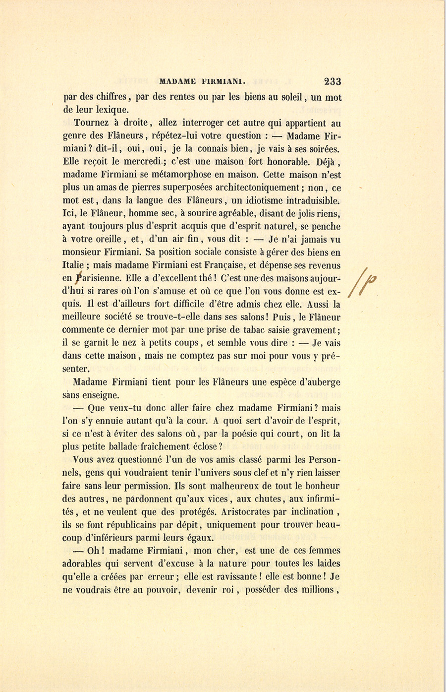 Madame Firmiani tient pour les Flâneurs une espèce d’auberge sans enseigne.