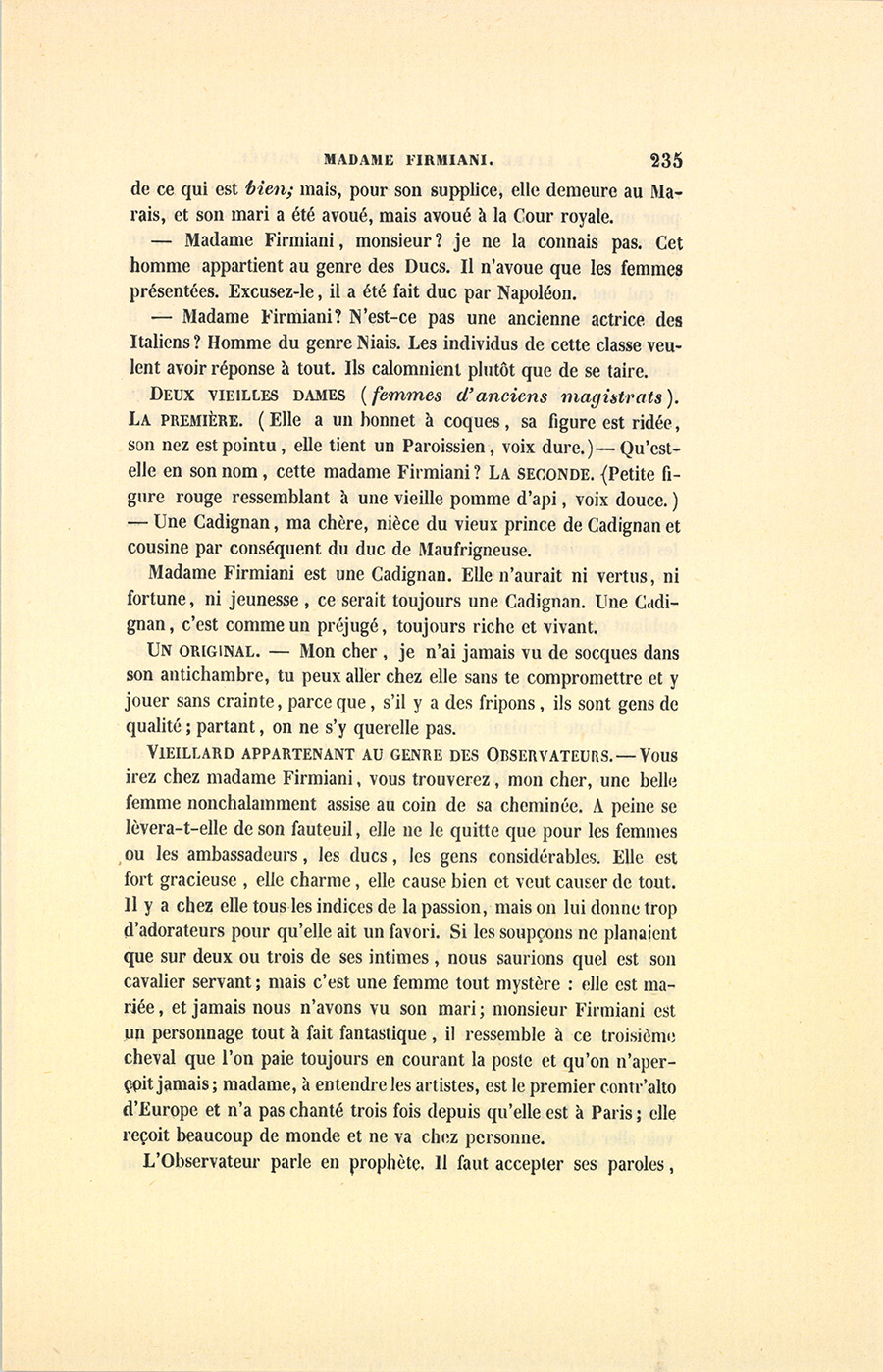– Madame Firmiani ? N’est-ce pas une ancienne actrice des Italiens ? Homme du genre Niais. Les individus de cette classe veulent avoir réponse à tout. Ils calomnient plutôt que de se taire.