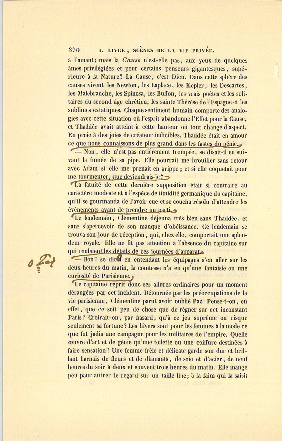 – Ah ! mais nous sommes des Florentins transplantés dans le Nord, répondit Thaddée avec une finesse d’accent et avec un regard qui firent voir dans sa conduite à table l’effet d’un parti pris.