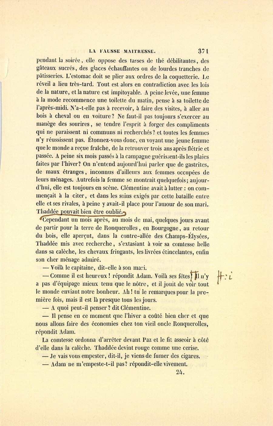 {p. 383} – Thaddée se rendait justice… en restant chez lui, reprit-elle.