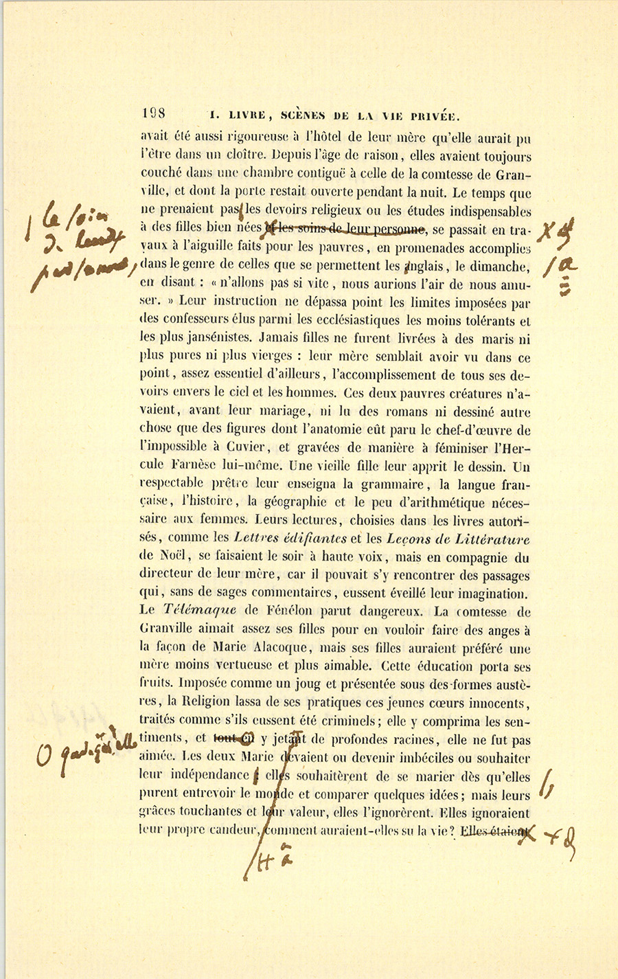 Élevées dans un sombre hôtel du Marais par une femme dévote et d’une intelligence étroite qui pénétrée de ses devoirs (la phrase classique) avait accompli la première tâche d’une mère envers ses filles, Marie-Angélique et Marie-Eugénie atteignirent le moment de leur mariage, la première à vingt ans, la seconde à dix-sept, sans jamais être sorties de la zone domestique où planait le regard maternel. Jusqu’alors elles n’étaient allées à aucun spectacle, les églises de Paris furent leurs théâtres. Enfin leur éducation {p. 198} avait été aussi rigoureuse à l’hôtel de leur mère qu’elle aurait pu l’être dans un cloître. Depuis l’âge de raison, elles avaient toujours couché dans une chambre contiguë à celle de la comtesse de Granville, et dont la porte restait ouverte pendant la nuit. Le temps que ne prenaient pas le soin de leurs personnes, les devoirs religieux ou les études indispensables à des filles bien nées se passait en travaux à l’aiguille faits pour les pauvres, en promenades accomplies dans le genre de celles que se permettent les Anglais, le dimanche, en disant : « N’allons pas si vite, nous aurions l’air de nous amuser. » Leur instruction ne dépassa point les limites imposées par des confesseurs élus parmi les ecclésiastiques les moins tolérants et les plus jansénistes. Jamais filles ne furent livrées à des maris ni plus pures ni plus vierges : leur mère semblait avoir vu dans ce point, assez essentiel d’ailleurs, l’accomplissement de tous ses devoirs envers le ciel et les hommes. Ces deux pauvres créatures n’avaient, avant leur mariage, ni lu des romans ni dessiné autre chose que des figures dont l’anatomie eût paru le chef-d’œuvre de l’impossible à Cuvier, et gravées de manière à féminiser l’Hercule Farnèse lui-même. Une vieille fille leur apprit le dessin. Un respectable prêtre leur enseigna la grammaire, la langue française, l’histoire, la géographie et le peu d’arithmétique nécessaire aux femmes. Leurs lectures, choisies dans les livres autorisés, comme les Lettres édifiantes et les Leçons de Littérature de Noël, se faisaient le soir à haute voix, mais en compagnie du directeur de leur mère, car il pouvait s’y rencontrer des passages qui, sans de sages commentaires, eussent éveillé leur imagination. Le Télémaque de Fénelon parut dangereux. La comtesse de Granville aimait assez ses filles pour en vouloir faire des anges à la façon de Marie Alacoque, mais ses filles auraient préféré une mère moins vertueuse et plus aimable. Cette éducation porta ses fruits. Imposée comme un joug et présentée sous des formes austères, la Religion lassa de ses pratiques ces jeunes cœurs innocents, traités comme s’ils eussent été criminels ; elle y comprima les sentiments, et quoiqu’elle y jetât de profondes racines, elle ne fut pas aimée. Les deux Marie devaient ou devenir imbéciles ou souhaiter leur indépendance, elles souhaitèrent de se marier dès qu’elles purent entrevoir le monde et comparer quelques idées ; mais leurs grâces touchantes et leur valeur, elles l’ignorèrent. Elles ignoraient leur propre candeur, comment auraient-elles su la vie ? {p. 199} Sans armes contre le malheur, comme sans expérience pour apprécier le bonheur, elles ne tirèrent d’autre consolation que d’elles-mêmes au fond de cette geôle maternelle. Leurs douces confidences, le soir, à voix basse, ou les quelques phrases échangées quand leur mère les quittait pour un moment, contint parfois plus d’idées que les mots n’en pouvaient exprimer. Souvent un regard dérobé à tous les yeux et par lequel elles se communiquaient leurs émotions fut comme un poème d’amère mélancolie. La vue du ciel sans nuages, le parfum des fleurs, le tour du jardin fait bras dessus bras dessous, leur offrirent des plaisirs inouïs. L’achèvement d’une broderie leur causait d’innocentes joies. La société de leur mère, loin de présenter quelques ressources à leur cœur ou de stimuler leur esprit, ne pouvait qu’assombrir leurs idées et contrister leurs sentiments ; car elle se composait de vieilles femmes droites, sèches, sans grâce, dont la conversation roulait sur les différences qui distinguaient les prédicateurs ou les directeurs de conscience, sur leurs petites indispositions et sur les événements religieux les plus imperceptibles pour la Quotidienne ou pour l’Ami de la Religion. Quant aux hommes, ils eussent éteint les flambeaux de l’amour, tant leurs figures étaient froides et tristement résignées ; ils avaient tous cet âge où l’homme est maussade et chagrin, où sa sensibilité ne s’exerce plus qu’à table et ne s’attache qu’aux choses qui concernent le bien-être. L’égoïsme religieux avait desséché ces cœurs voués au devoir et retranchés derrière la pratique. De silencieuses séances de jeu les occupaient presque toute la soirée. Les deux petites, mises comme au ban de ce sanhédrin qui maintenait la sévérité maternelle, se surprenaient à haïr ces désolants personnages aux yeux creux, aux figures refrognées. Sur les ténèbres de cette vie se dessina vigoureusement une seule figure d’homme, celle d’un maître de musique. Les confesseurs avaient décidé que la musique était un art chrétien, né dans l’Église catholique et développé par elle. On permit donc aux deux petites filles d’apprendre la musique. Une demoiselle à lunettes, qui montrait le solfége et le piano dans un couvent voisin, les fatigua d’exercices. Mais quand l’aînée de ses filles atteignit dix ans, le comte de Granville démontra la nécessité de prendre un maître. Madame de Granville donna toute la valeur d’une conjugale obéissance à cette concession nécessaire : il est dans l’esprit {p. 200} des dévotes de se faire un mérite des devoirs accomplis. Le maître fut un Allemand catholique, un de ces hommes nés vieux