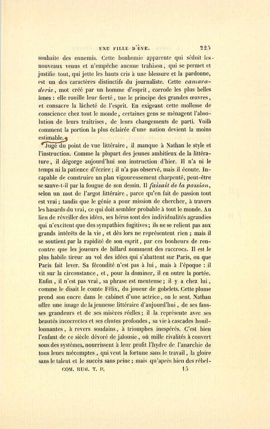 – Pauvre sot ! tu te perds, Marie est ici et te voit, dit à Nathan Vandenesse qui s’était déguisé en femme.