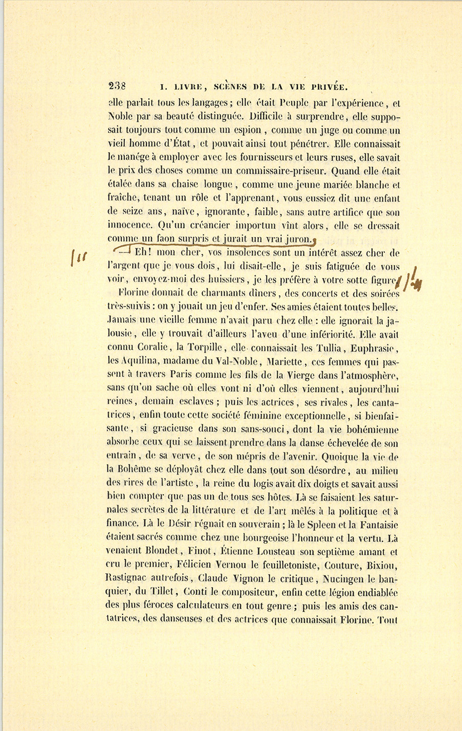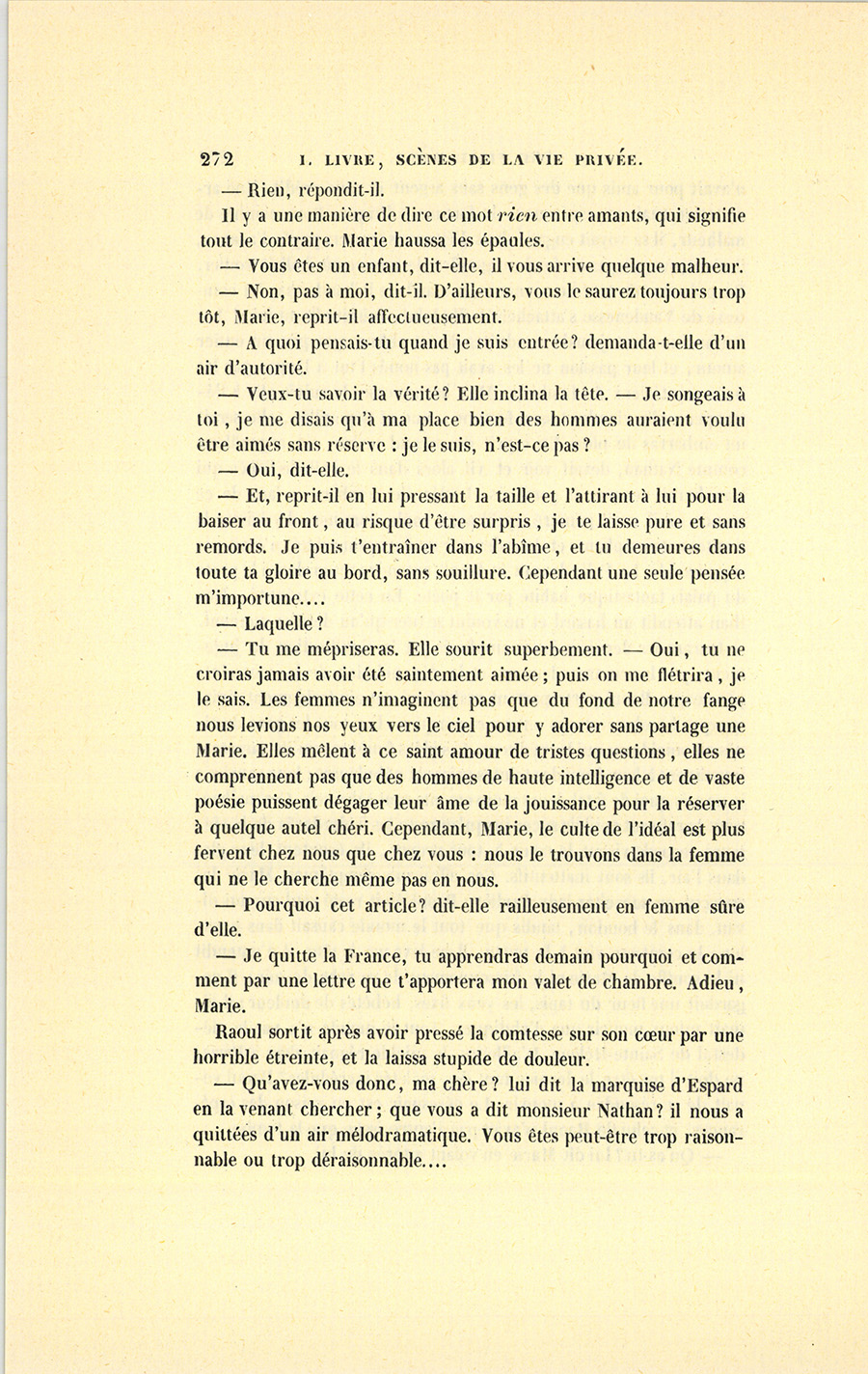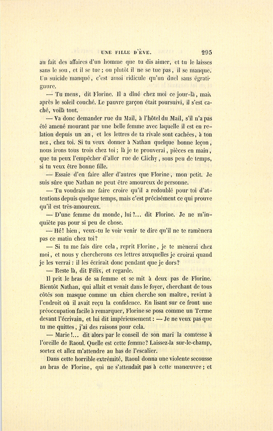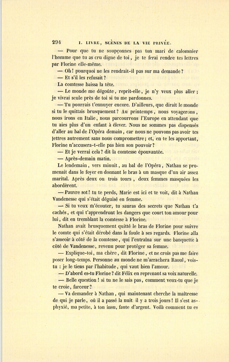 {p. 294} – Pour que tu ne soupçonnes pas ton mari de calomnier l’homme que tu as cru digne de toi, je te ferai rendre tes lettres par Florine elle-même.