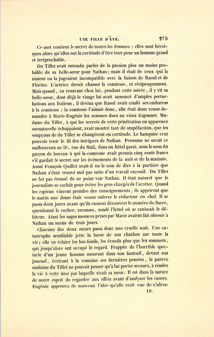– Pour que la plaisanterie soit excellente, une femme doit s’attaquer à une belle proie, à une célébrité, à un homme d’esprit et le faire donner au diable. Veux-tu que je te livre Nathan ? J’aurai, par quelqu’un qui connaît Florine, des secrets à le rendre fou.