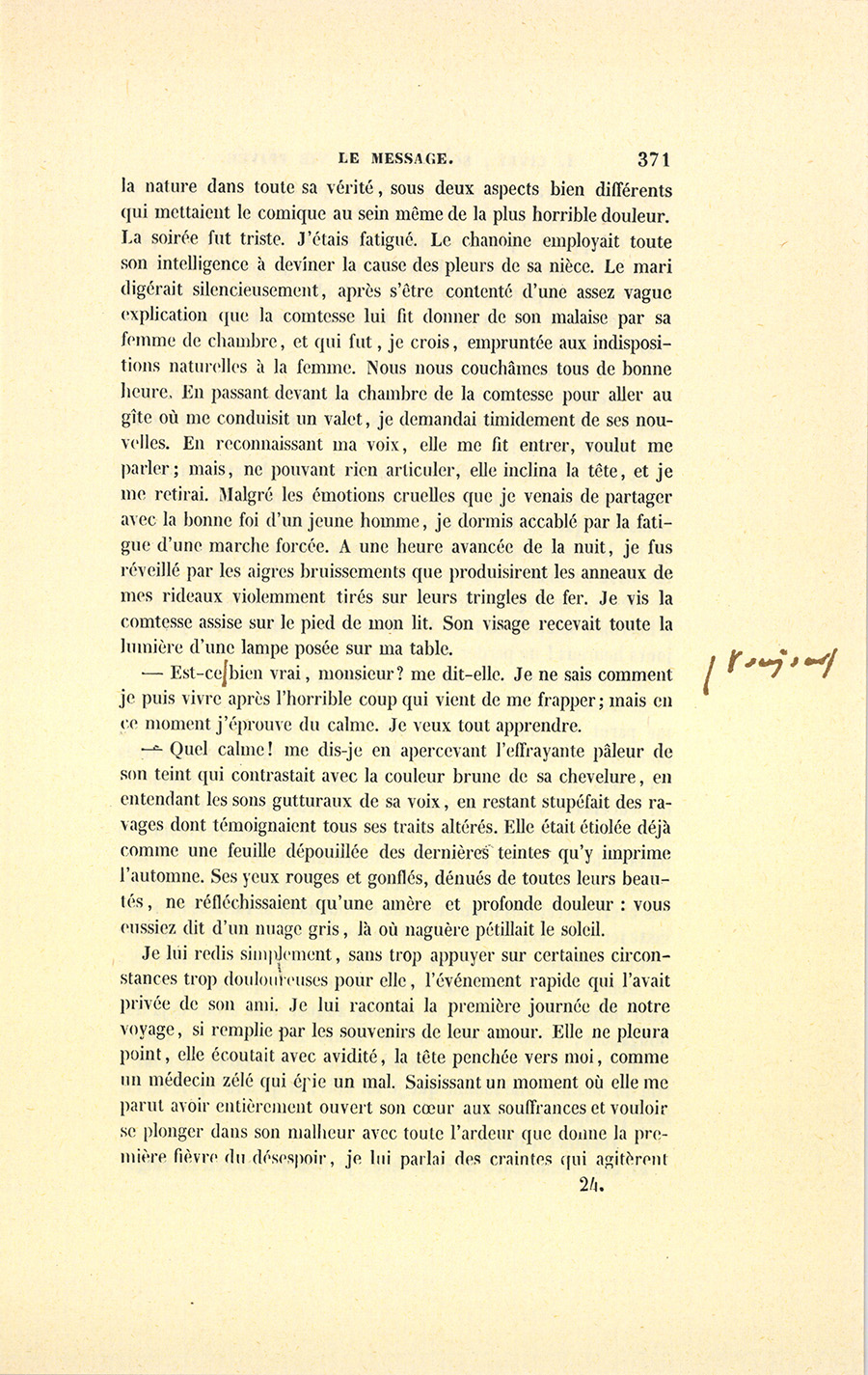 Et dans l’innocence de mon âme, je pris un rouleau de {p. 373} vingt-cinq louis, qui me servit à revenir à Paris, et que je rendis fidèlement au prétendu correspondant de monsieur de Montpersan.