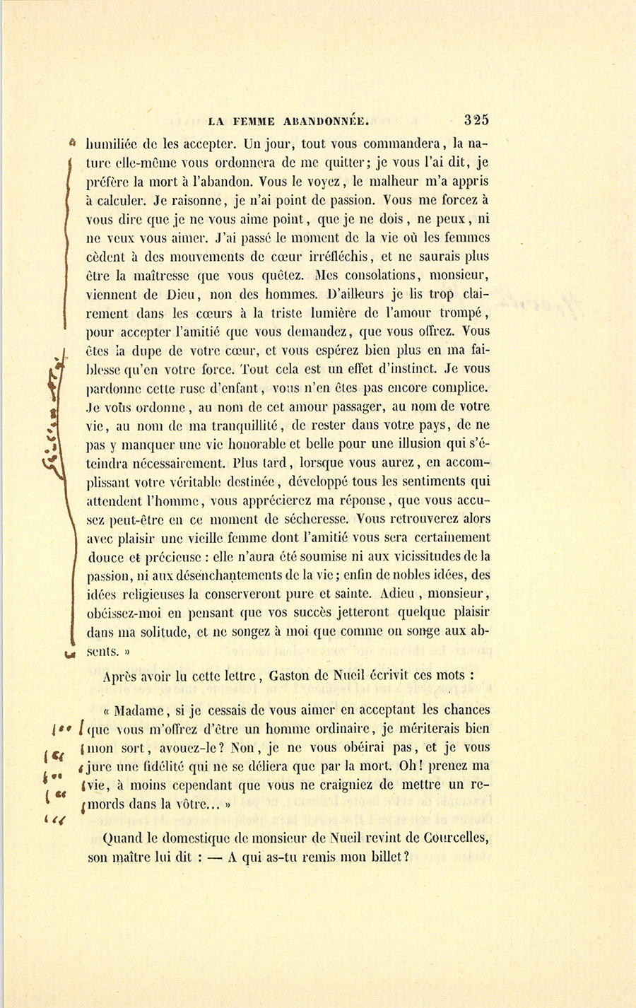 Après avoir lu cette lettre, Gaston de Nueil écrivit ces mots :