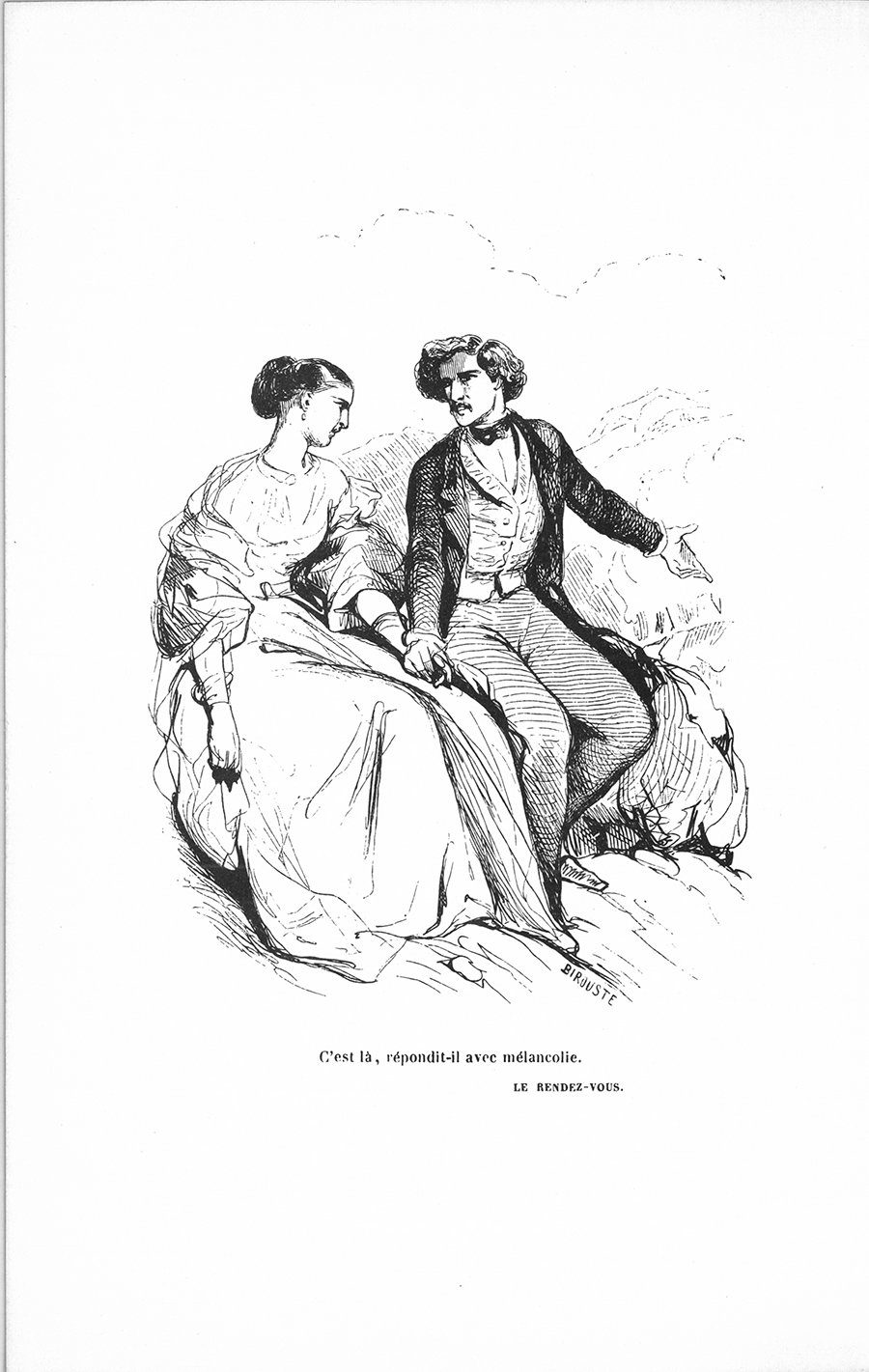 {p. 11} – Ah ! s’écria le père en poussant un soupir, enfant gâté ! les meilleurs cœurs sont quelquefois bien cruels. Vous consacrer notre vie, ne penser qu’à vous, préparer votre bien-être, sacrifier nos goûts à vos fantaisies, vous adorer, vous donner même notre sang, ce n’est donc rien ? Hélas ! oui, vous acceptez tout avec insouciance. Pour toujours obtenir vos sourires et votre dédaigneux amour, il faudrait avoir la puissance de Dieu. Puis enfin un autre arrive ! un amant, un mari nous ravissent vos cœurs.