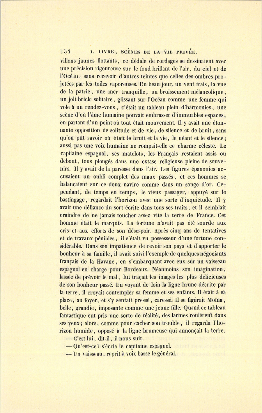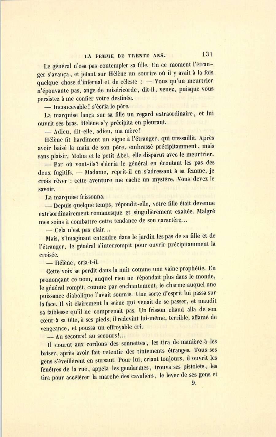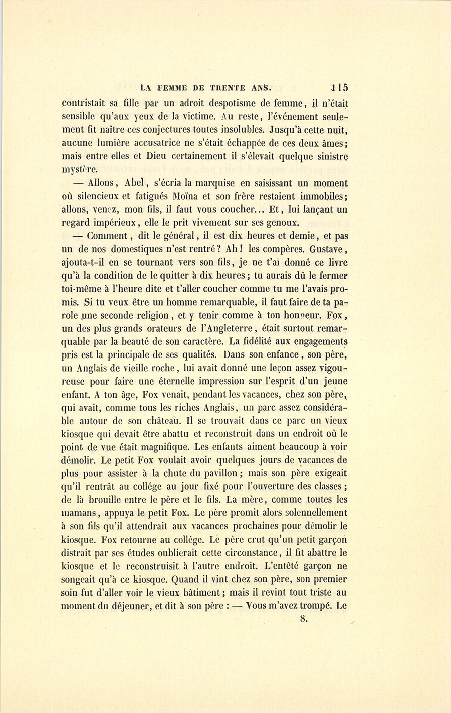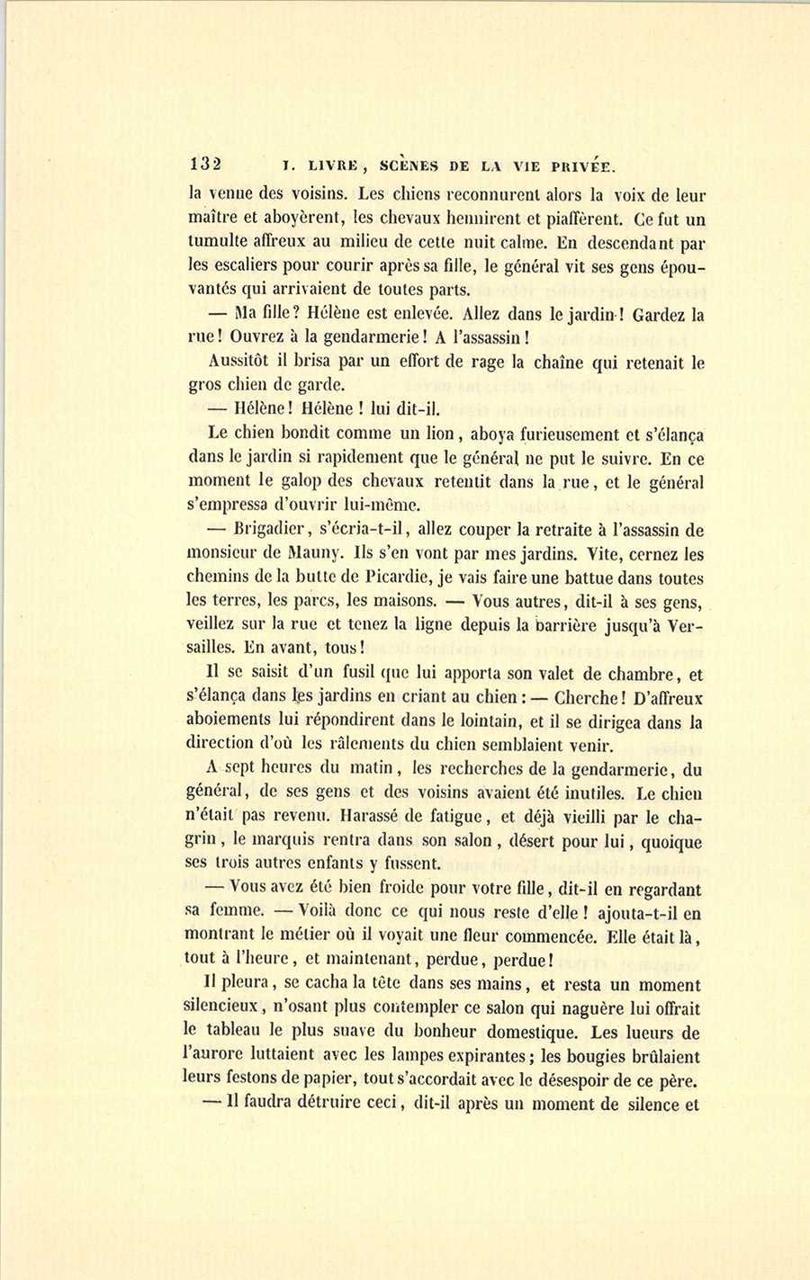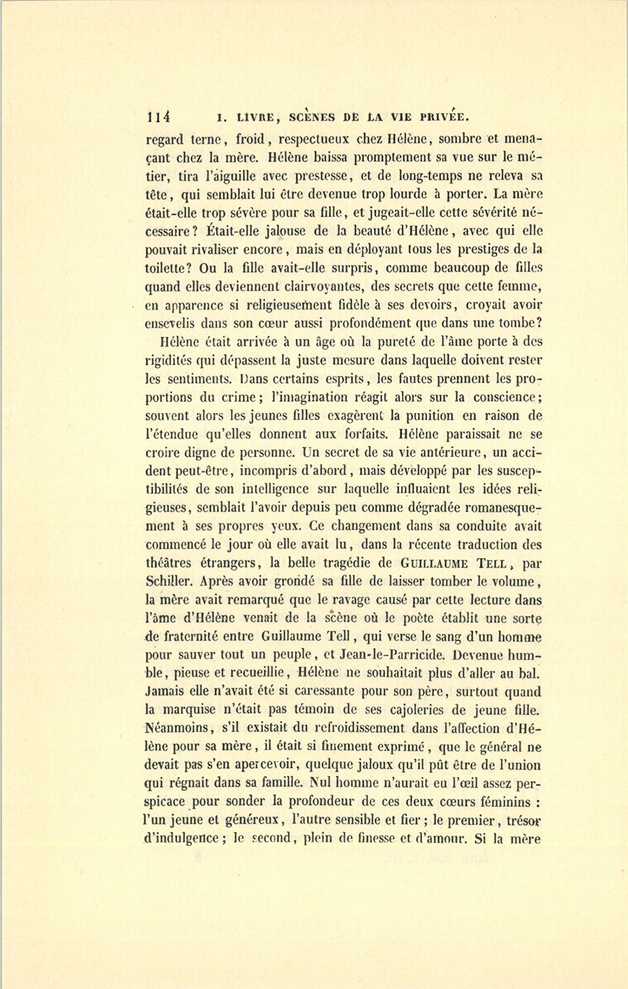 Ces religieuses pensées, si naturelles au cœur des vieillards, flottaient éparses dans l’âme de madame d’Aiglemont ; elles y étaient à {p. 157} demi lumineuses, tantôt abîmées, tantôt déployées complétement, comme des fleurs tourmentées à la surface des eaux pendant une tempête. Elle s’était assise, lassée, affaiblie par une longue méditation, par une de ces rêveries au milieu desquelles toute la vie se dresse, se déroule aux yeux de ceux qui pressentent la mort.