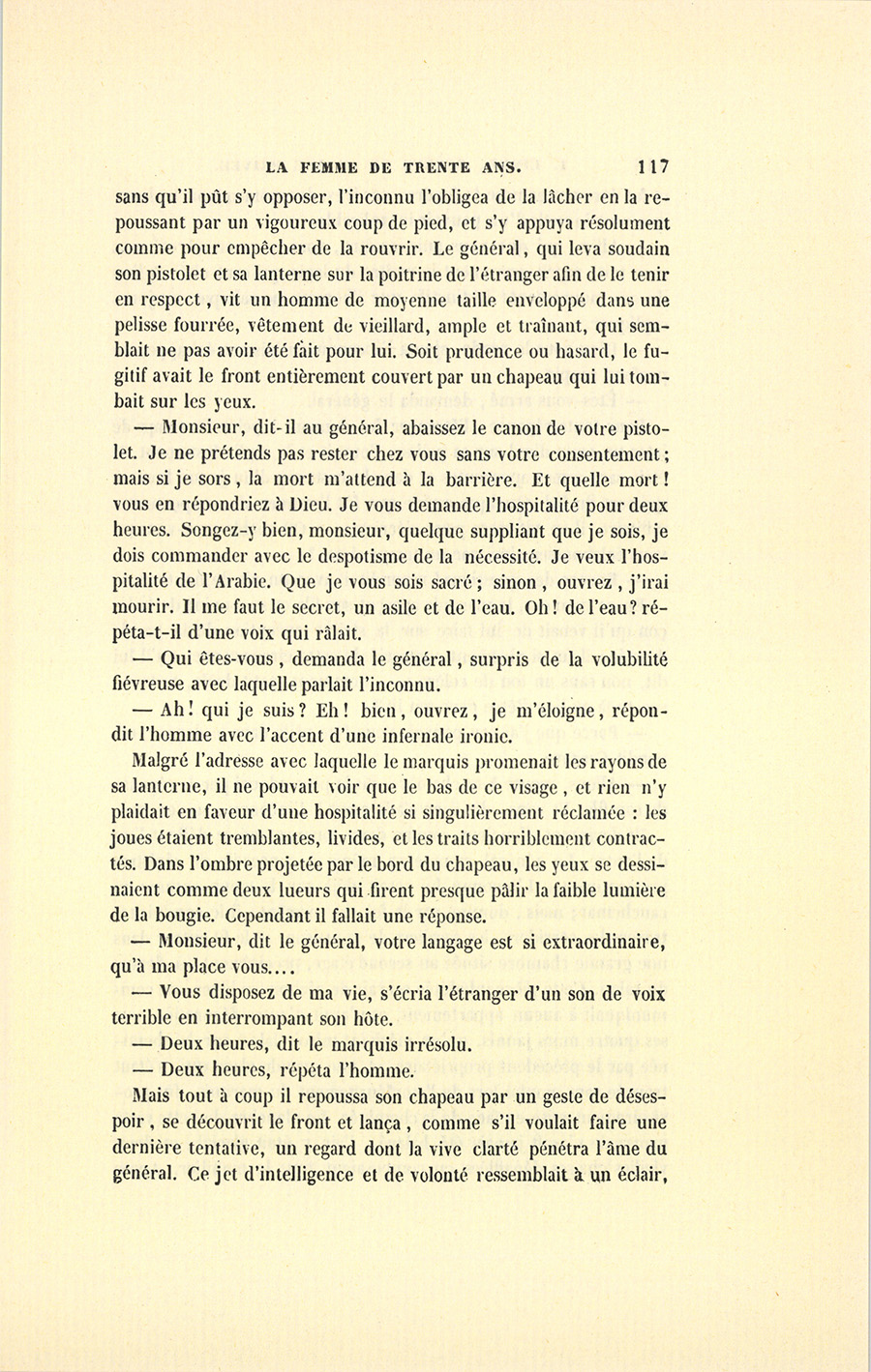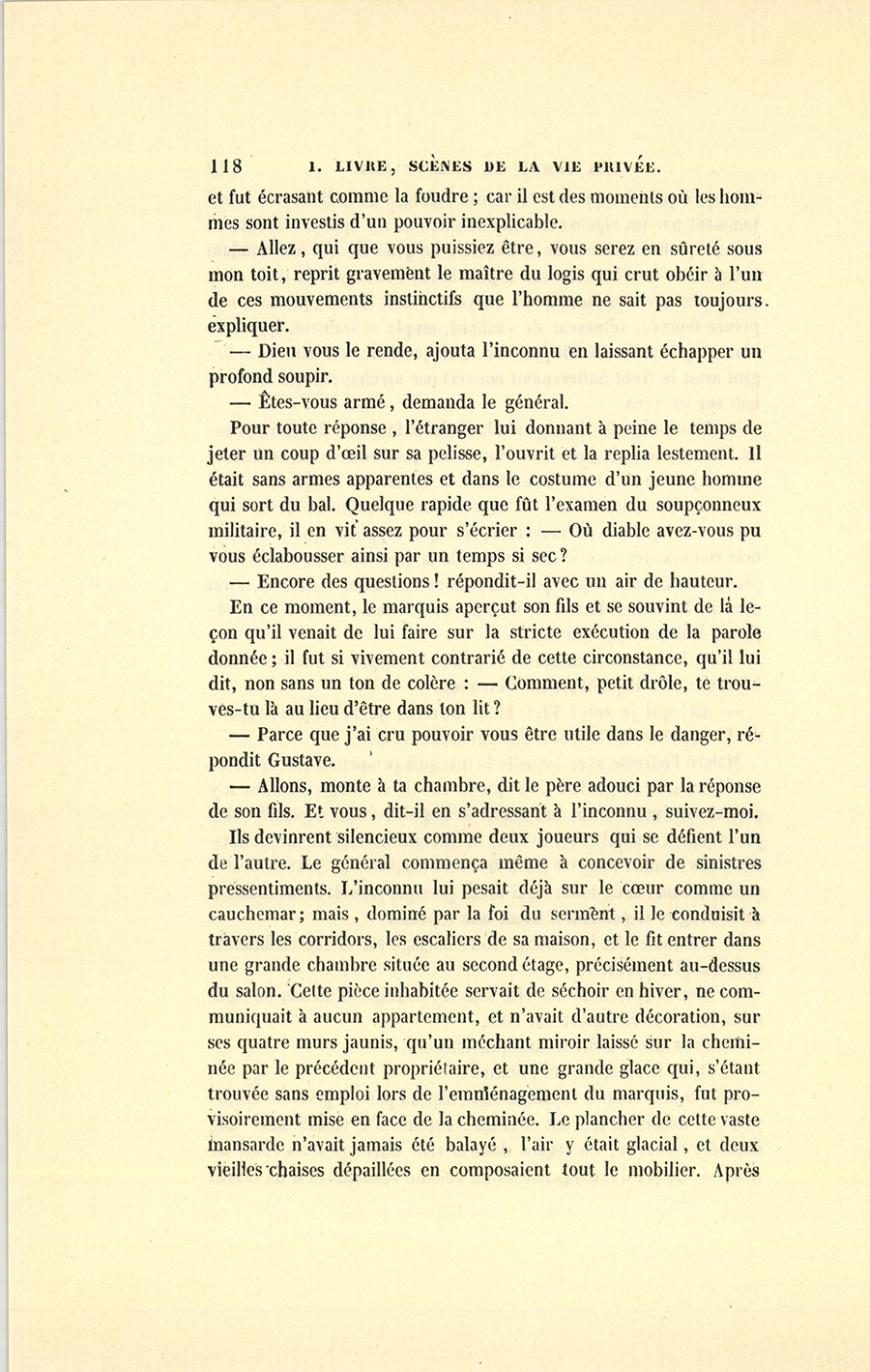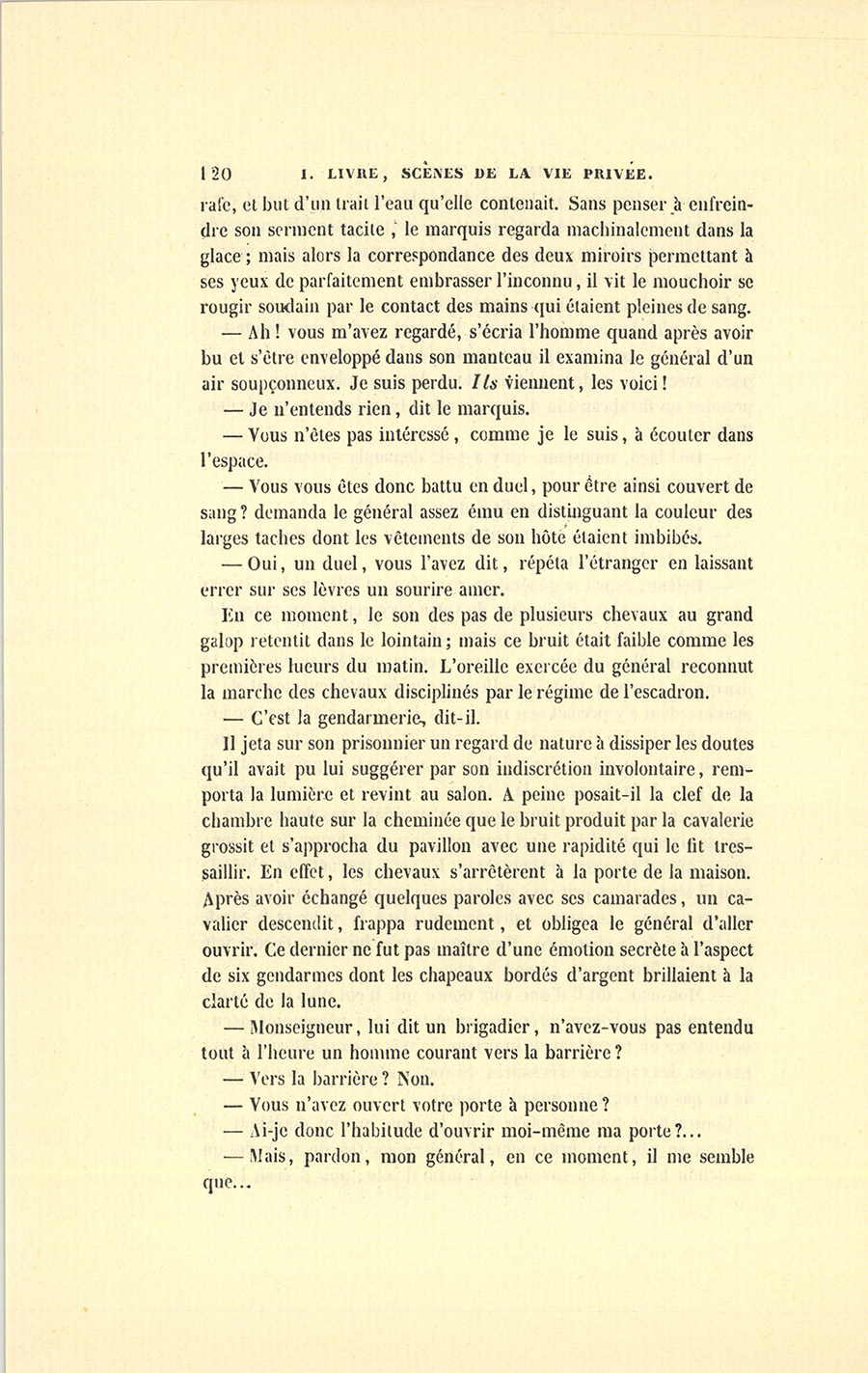 L’inconnu était un de ces voyageurs qui se trouvèrent sur le continent lorsque Napoléon arrêta tous les Anglais en représailles de l’attentat commis envers le droit des gens par le cabinet de Saint-James lors de la rupture du traité d’Amiens. Soumis au caprice du pouvoir impérial, ces prisonniers ne restèrent pas tous dans les résidences où ils furent saisis, ni dans celles qu’ils eurent d’abord la liberté de choisir. La plupart de ceux qui habitaient en ce moment la Touraine y furent transférés de divers points de l’empire, où leur séjour avait paru compromettre les intérêts de la politique continentale. Le jeune captif qui promenait en ce moment son ennui matinal était une victime de la puissance bureaucratique. Depuis deux ans, un ordre parti du ministère des Relations Extérieures l’avait arraché au climat de Montpellier, où la rupture de la paix le surprit autrefois cherchant à se guérir d’une affection de {p. 17} poitrine. Du moment où ce jeune homme reconnut un militaire dans la personne du comte d’Aiglemont, il s’empressa d’en éviter les regards en tournant assez brusquement la tête vers les prairies de la Cise.