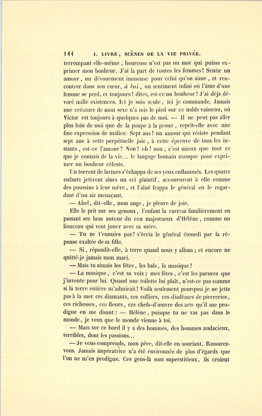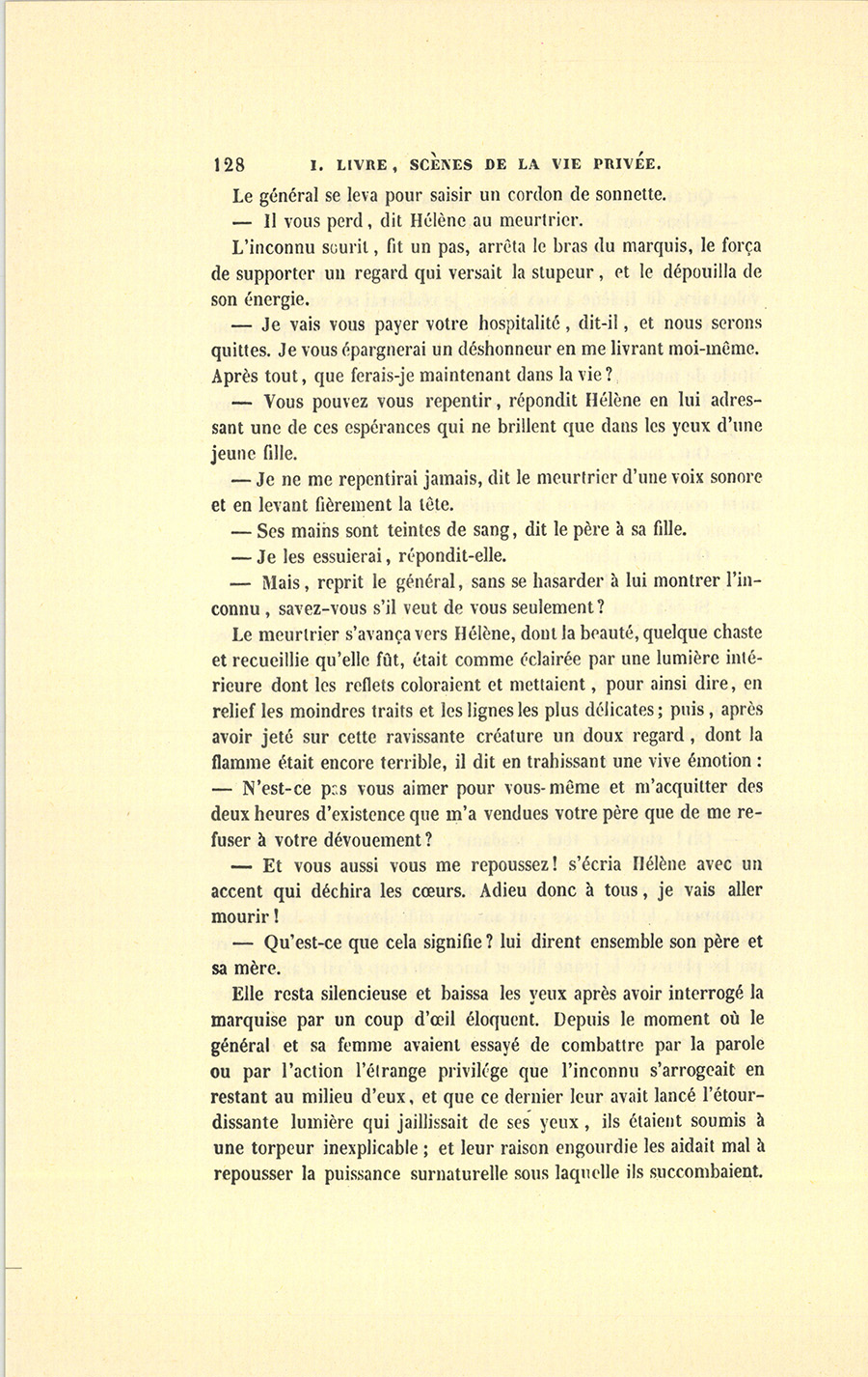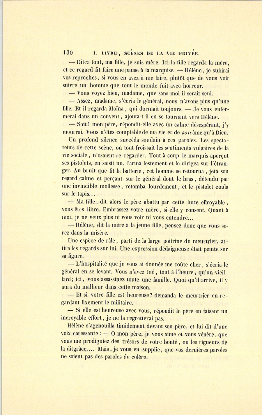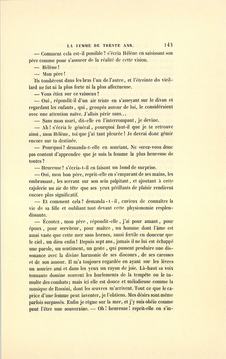 – Je suis sa femme, répliqua-t-elle avec un air de fierté, avec un accent plein de noblesse. – Voici, depuis sept ans, le premier bonheur qui ne me vienne pas de lui, ajouta-t-elle en saisissant la main de son père et l’embrassant, et voici le premier reproche que j’aie entendu.
