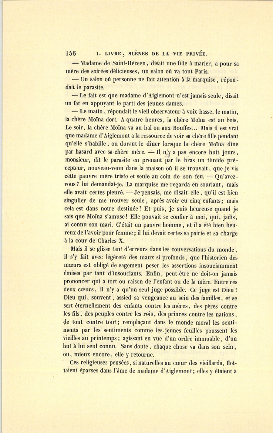 {p. 156} – Madame de Saint-Héreen, disait une fille à marier, a pour sa mère des soirées délicieuses, un salon où va tout Paris.