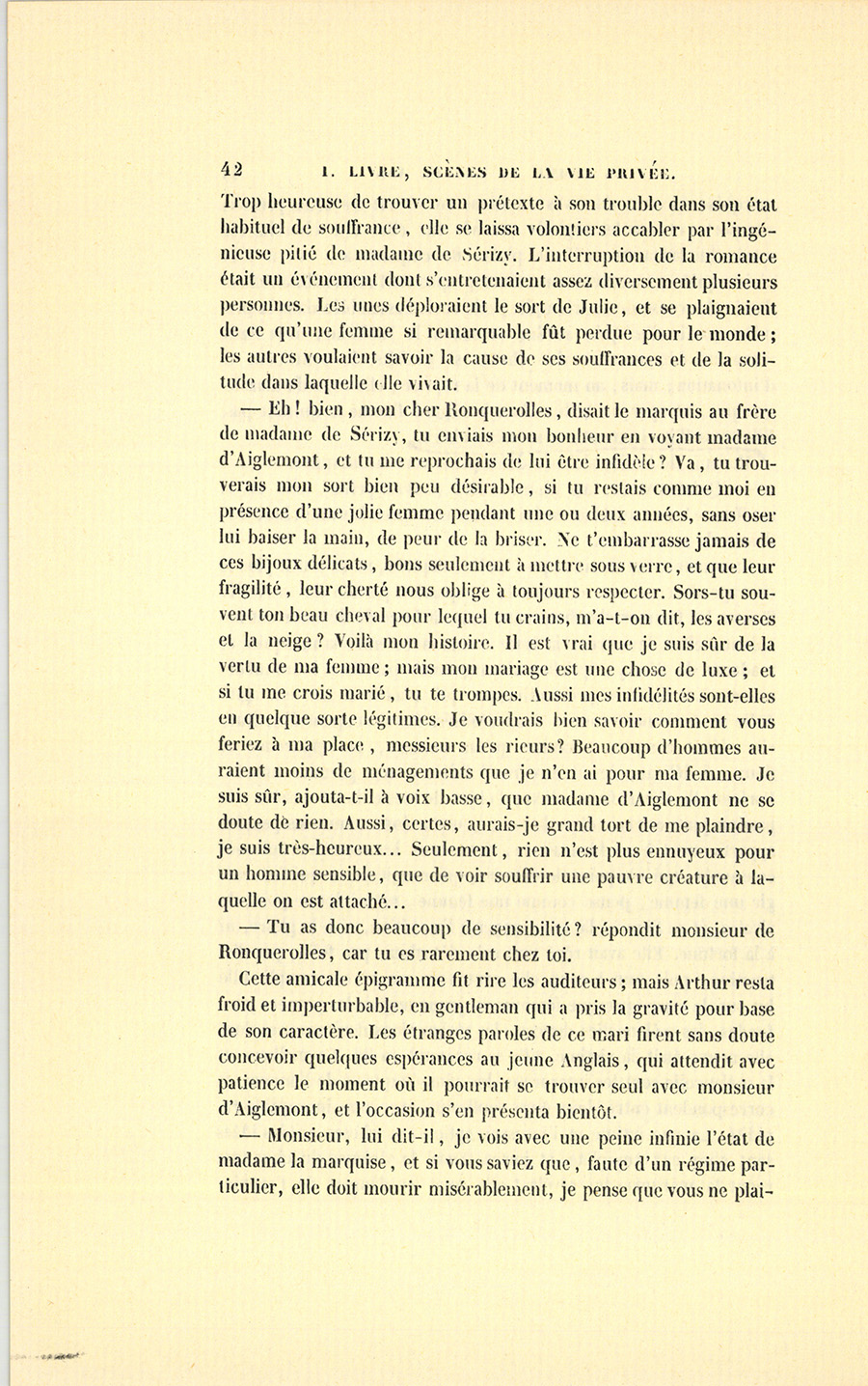– Il faut rendre cette justice à madame de Saint-Héreen, disait une jeune femme, que sa mère n’a rien trouvé de changé autour d’elle. Madame d’Aiglemont est admirablement bien logée, elle a une voiture à ses ordres, et peut aller partout dans le monde comme auparavant…