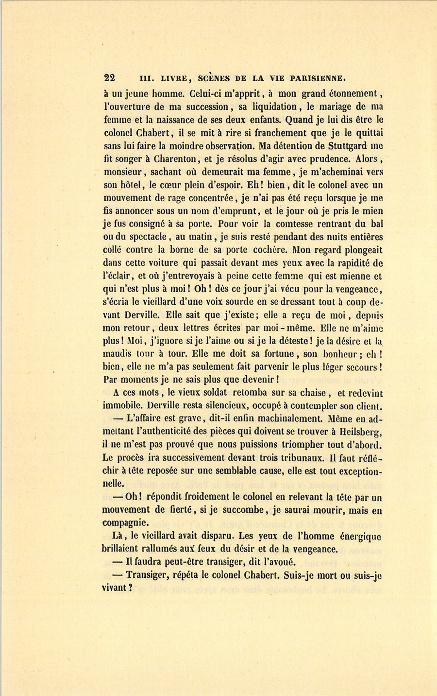 – Oui, répondit-elle, si je trouvais le colonel Chabert dans le plaideur.