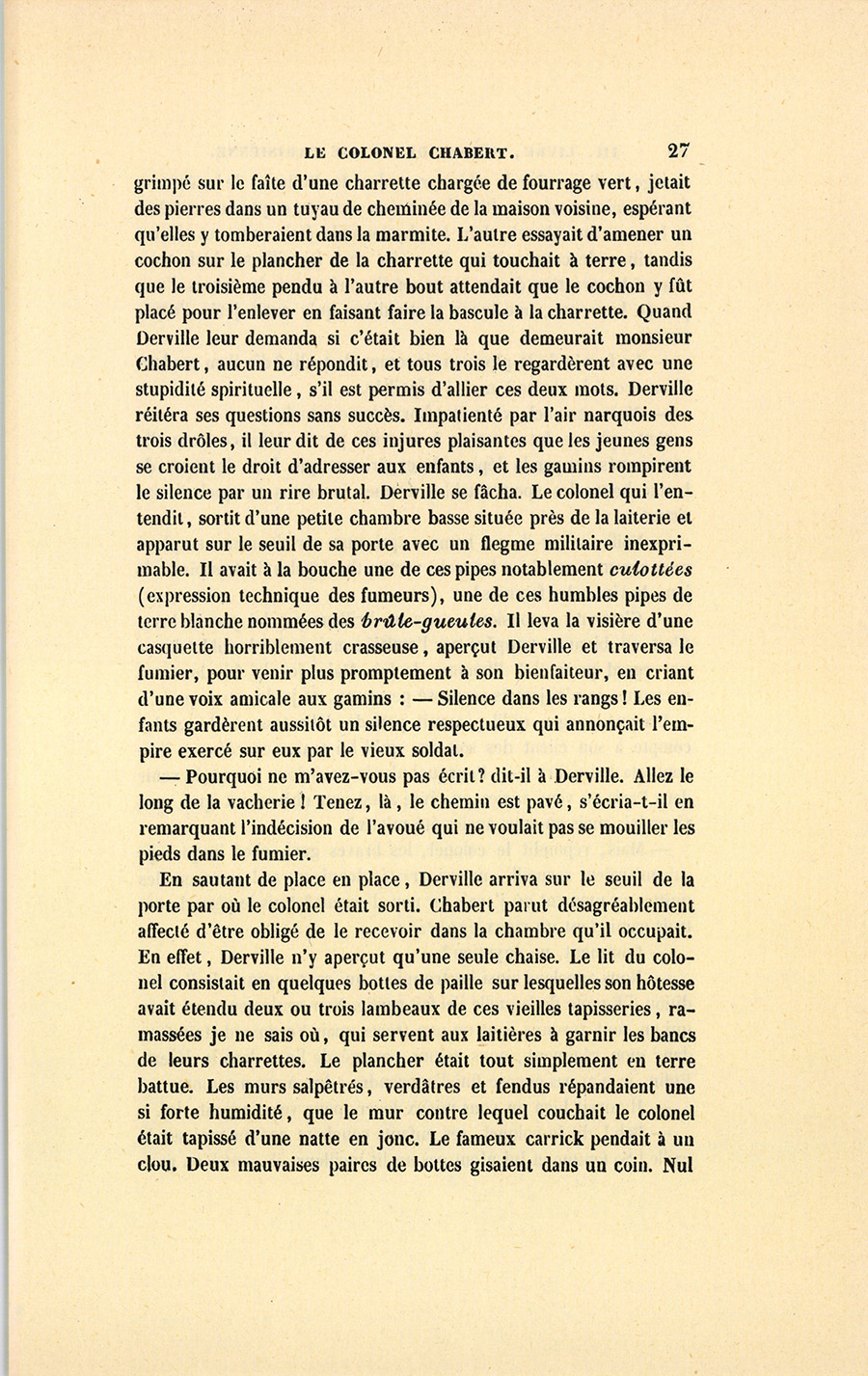 – Mais, reprit Chabert, est-ce que je ne puis pas vivre ici, dans votre petit pavillon, comme un de vos parents ? Je suis usé comme un canon de rebut, il ne me faut qu’un peu de tabac et le Constitutionnel.