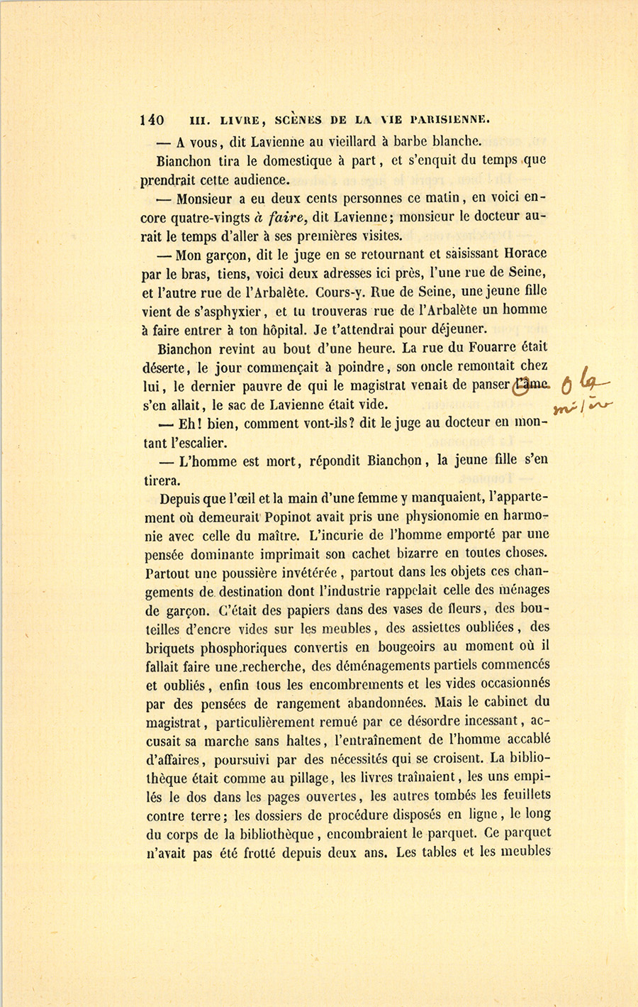 – Rastignac m’a chargé de la plus difficile de toutes les négociations, se dit Bianchon en se souvenant à son lever de la commission délicate qui lui était confiée. Mais je n’ai jamais demandé à mon oncle le moindre petit service au Palais, et j’ai fait pour lui {p. 128} plus de mille visites gratis. D’ailleurs, entre nous, nous ne nous gênons point. Il me dira oui ou non, et tout sera fini.