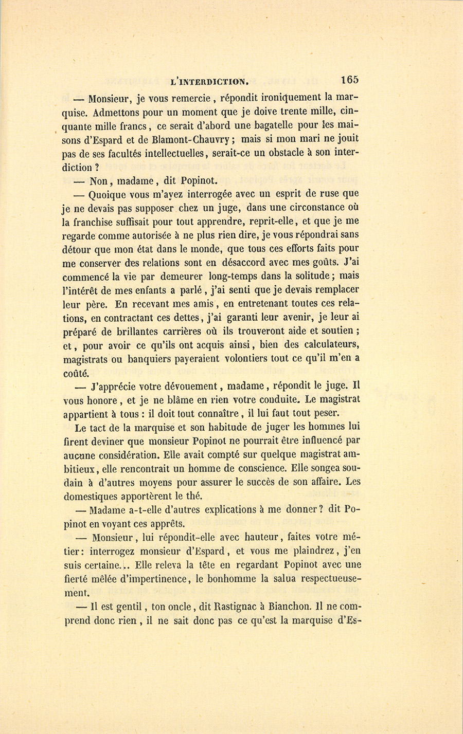 – Non, mon oncle, la marquise d’Espard est une haute et puissante dame, qui a présenté une requête au Tribunal, à l’effet de faire interdire son mari, et vous avez été commis…
