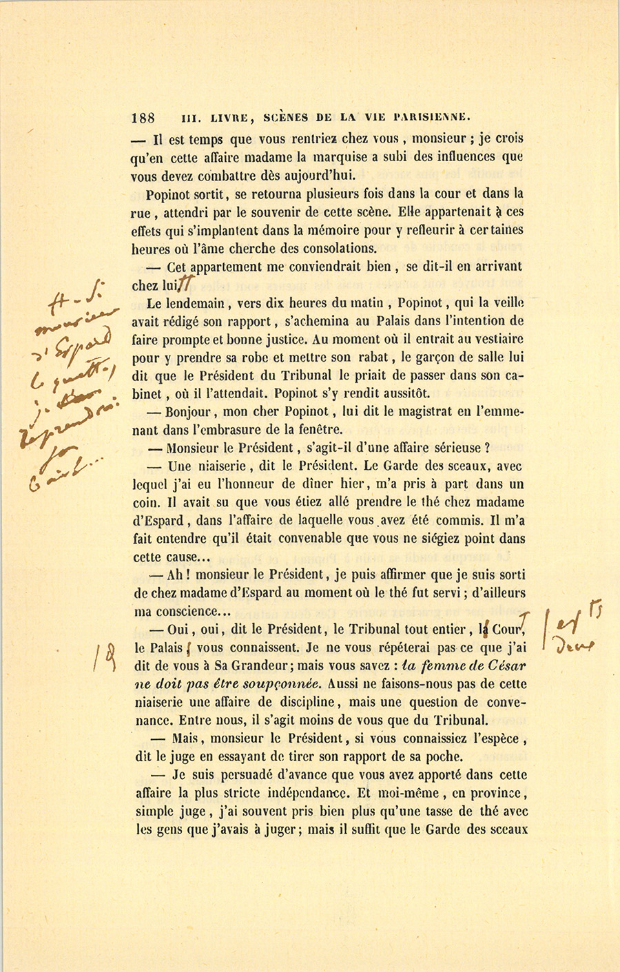 – Une niaiserie, dit le Président. Le Garde des sceaux, avec lequel j’ai eu l’honneur de dîner hier, m’a pris à part dans un coin. Il avait su que vous étiez allé prendre le thé chez madame d’Espard, dans l’affaire de laquelle vous avez été commis. Il m’a fait entendre qu’il était convenable que vous ne siégiez point dans cette cause…