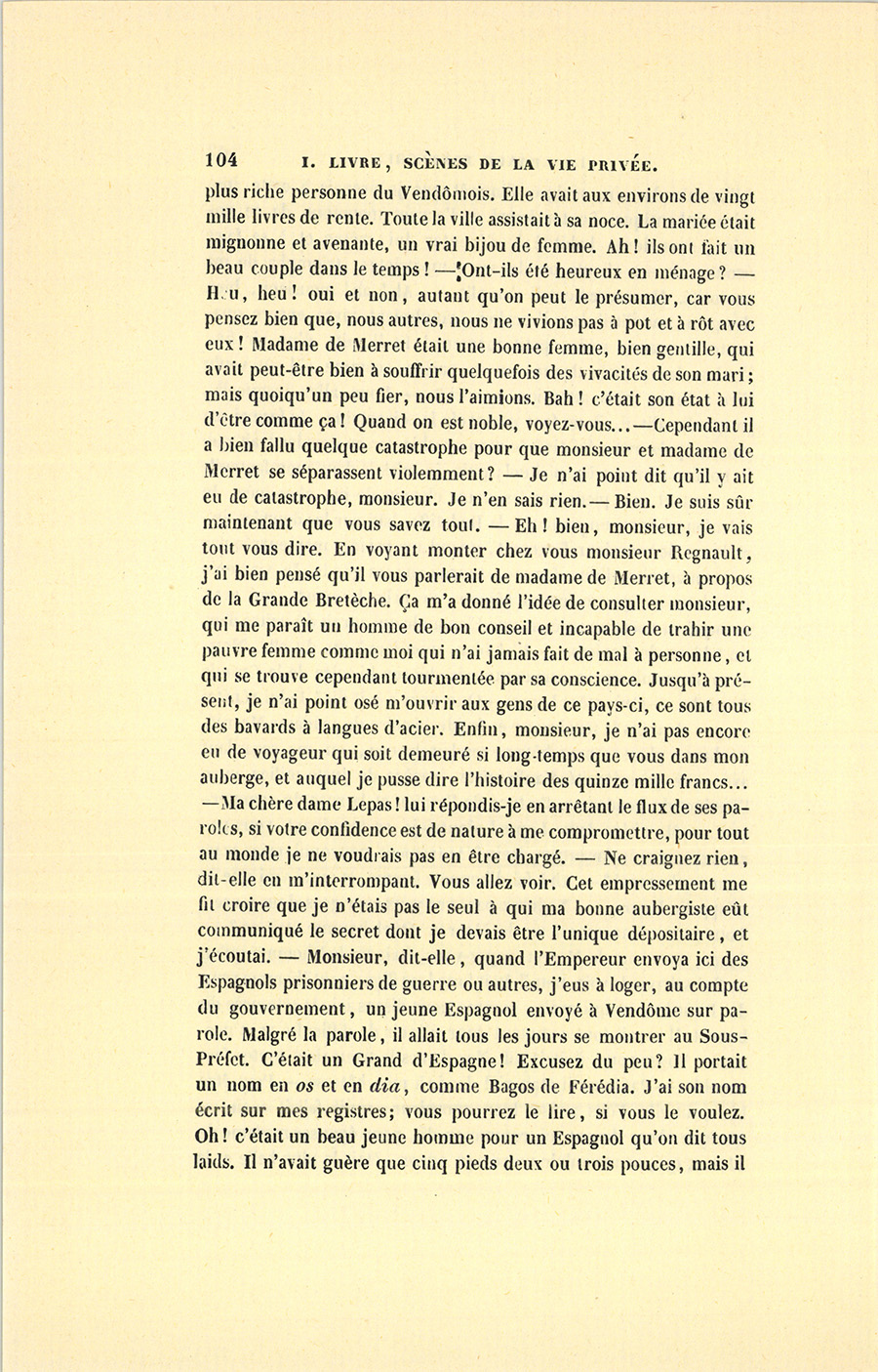 – Mais croyez-vous que ce que nous vous servons soit commun ? dit Joseph Bridau. S’il fallait payer les plaisirs de la conversation comme vous payez ceux de la danse ou de la musique, votre fortune n’y suffirait pas ! Il n’y a pas deux représentations pour le même trait d’esprit.
