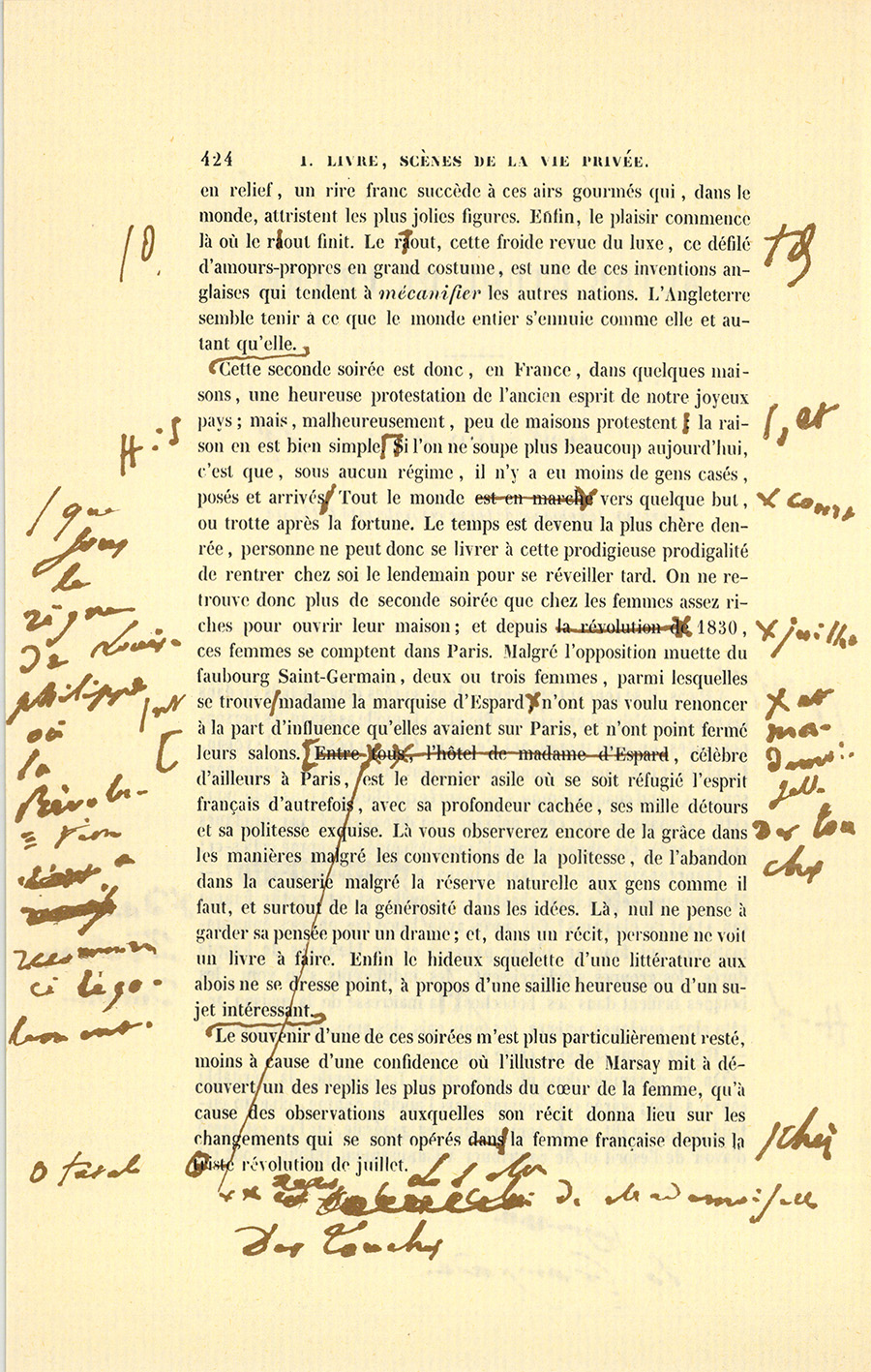 – La Presse a hérité de la Femme, s’écria Rastignac. La femme n’a plus le mérite du feuilleton parlé, des délicieuses médisances ornées de beau langage. Nous lisons des feuilletons écrits dans un patois qui change tous les trois ans, de petits journaux plaisants comme des croque-morts, et légers comme le plomb de leurs caractères. Les conversations françaises se font en iroquois révolutionnaire d’un bout à l’autre de la France par de longues colonnes imprimées dans des hôtels où grince une presse à la place des cercles élégants qui y brillaient jadis.