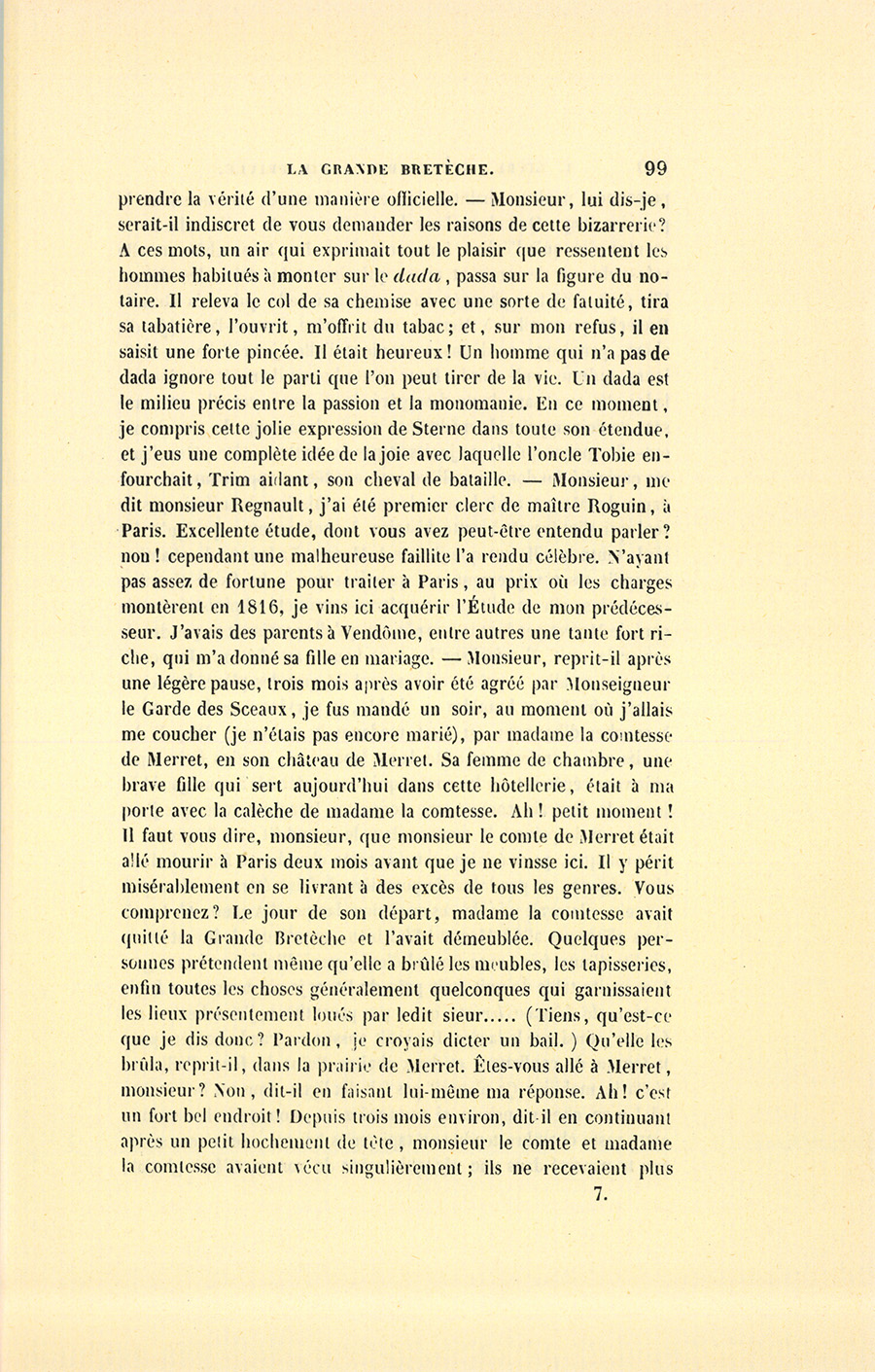 Ce mot détermina parmi nous tous ce mouvement imperceptible que les journalistes peignent ainsi dans les discours parlementaires : (profonde sensation).
