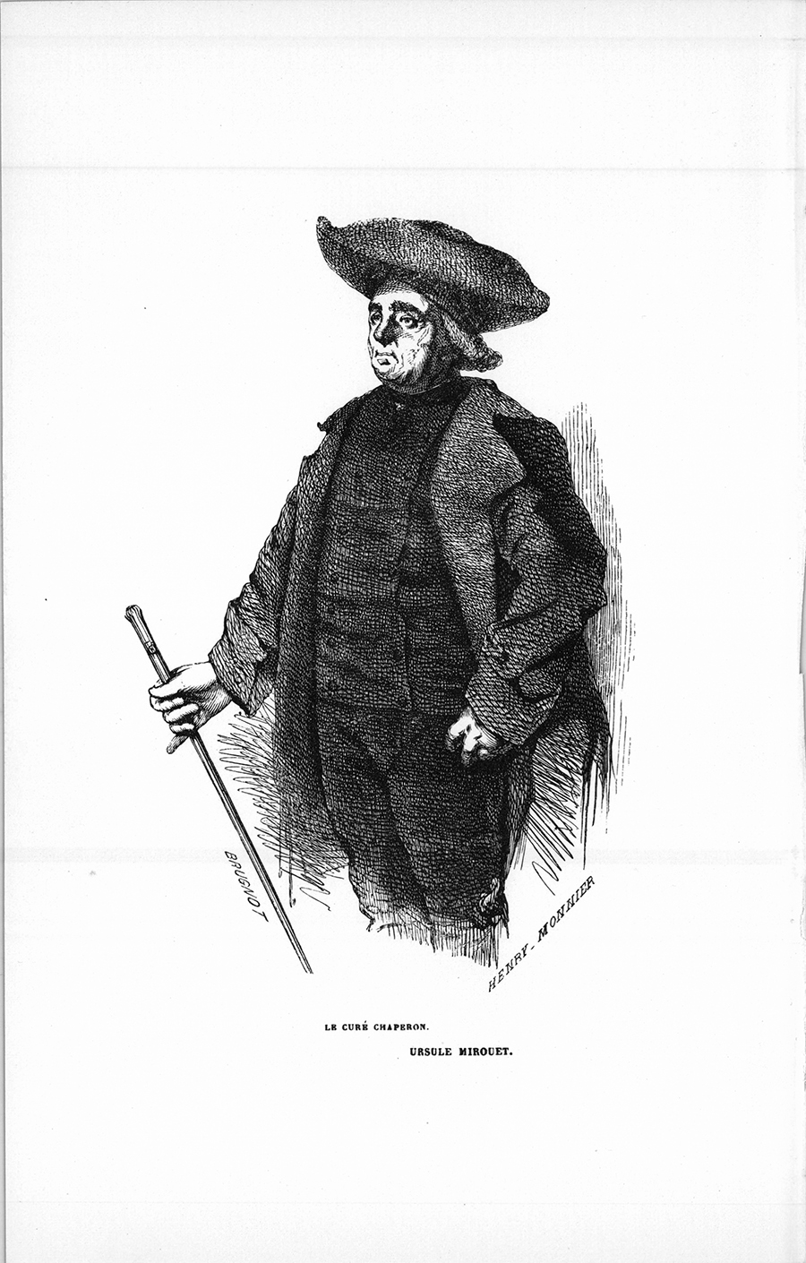 Ces belles actions, tôt ou tard découvertes et toujours accompagnées d’encouragements spirituels, s’accomplissaient avec une naïveté sublime. Cette vie était d’autant plus méritoire que l’abbé Chaperon possédait une érudition aussi vaste que variée et de précieuses facultés. Chez lui la finesse et la grâce, inséparables compagnes de la simplicité, rehaussaient une élocution digne d’un prélat. Ses manières, son caractère et ses mœurs donnaient à son commerce la saveur exquise de tout ce qui dans l’intelligence est à la fois spirituel et candide. Ami de la plaisanterie, il n’était jamais prêtre dans un salon. Jusqu’à l’arrivée du docteur Minoret, le bonhomme laissa ses lumières sous le boisseau sans regret ; mais peut-être lui sut-il gré de les utiliser. Riche d’une assez belle bibliothèque et de deux mille livres de rente quand il vint à Nemours, le curé ne possédait plus en 1829 que les revenus de sa cure, presque entièrement distribués chaque année. D’excellent conseil dans les affaires délicates ou dans les malheurs, plus d’une personne qui n’allait point à l’église y chercher des consolations allait au presbytère y chercher des avis. Pour achever ce portrait moral, il suffira d’une petite anecdote. Des paysans, rarement il est vrai, mais enfin de mauvaises gens se disaient poursuivis ou se faisaient poursuivre fictivement pour stimuler la bienfaisance de l’abbé Chaperon. Ils trompaient leurs femmes, qui, voyant leur maison menacée d’expropriation et leurs vaches saisies, trompaient par leurs innocentes larmes le pauvre curé, qui leur trouvait alors les sept ou huit cents francs demandés, avec lesquels le paysan achetait un lopin de terre. Quand de pieux personnages, des fabriciens, démontrèrent la fraude à l’abbé Chaperon en le priant de les consulter pour ne pas être {p. 24} victime de la cupidité, il leur dit : – Peut-être ces gens auraient-ils commis quelque chose de blâmable pour avoir leur arpent de terre, et n’est-ce pas encore faire le bien que d’empêcher le mal ? On aimera peut-être à trouver ici l’esquisse de cette figure, remarquable en ce que les sciences et les lettres avaient passé dans ce cœur et dans cette forte tête sans y rien corrompre. À soixante ans l’abbé Chaperon avait les cheveux entièrement blancs, tant il éprouvait vivement les malheurs d’autrui, tant aussi les événements de la Révolution avaient agi sur lui. Deux fois incarcéré pour deux refus de serment, deux fois, selon son expression, il avait dit son In manus. Il était de moyenne taille, ni gras ni maigre. Son visage, très-ridé, très-creusé, sans couleur, occupait tout d’abord le regard par la tranquillité profonde des lignes et par la pureté des contours qui semblaient bordés de lumière. Le visage d’un homme chaste a je ne sais quoi de radieux. Des yeux bruns, à prunelle vive, animaient ce visage irrégulier surmonté d’un front vaste. Son regard exerçait un empire explicable par une douceur qui n’excluait pas la force. Les arcades de ses yeux formaient comme deux voûtes ombragées de gros sourcils grisonnants qui ne faisaient point peur. Comme il avait perdu beaucoup de ses dents, sa bouche était déformée et ses joues rentraient ; mais cette destruction ne manquait pas de grâce, et ces rides pleines d’aménité semblaient vous sourire. Sans être goutteux, il avait les pieds si sensibles, il marchait si difficilement qu’il gardait des souliers en veau d’Orléans par toutes les saisons. Il trouvait la mode des pantalons peu convenable pour un prêtre, et se montrait toujours vêtu de gros bas en laine noire tricotés par sa gouvernante et d’une culotte de drap. Il ne sortait point en soutane, mais en redingote brune, et conservait le tricorne courageusement porté dans les plus mauvais jours. Ce noble et beau vieillard, dont la figure était toujours embellie par la sérénité d’une âme sans reproche, devait avoir sur les choses et sur les hommes de cette histoire une si grande influence qu’il fallait tout d’abord remonter à la source de son autorité.