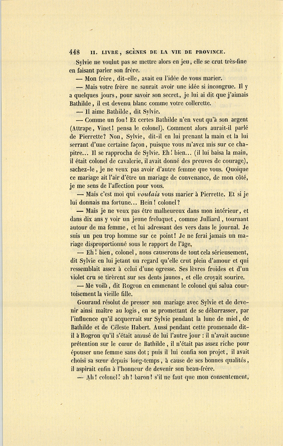 Ici Rogron ouvrait de grands yeux et s’écriait : – Comment ?