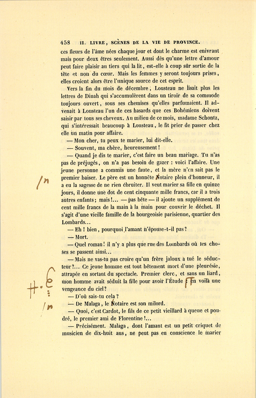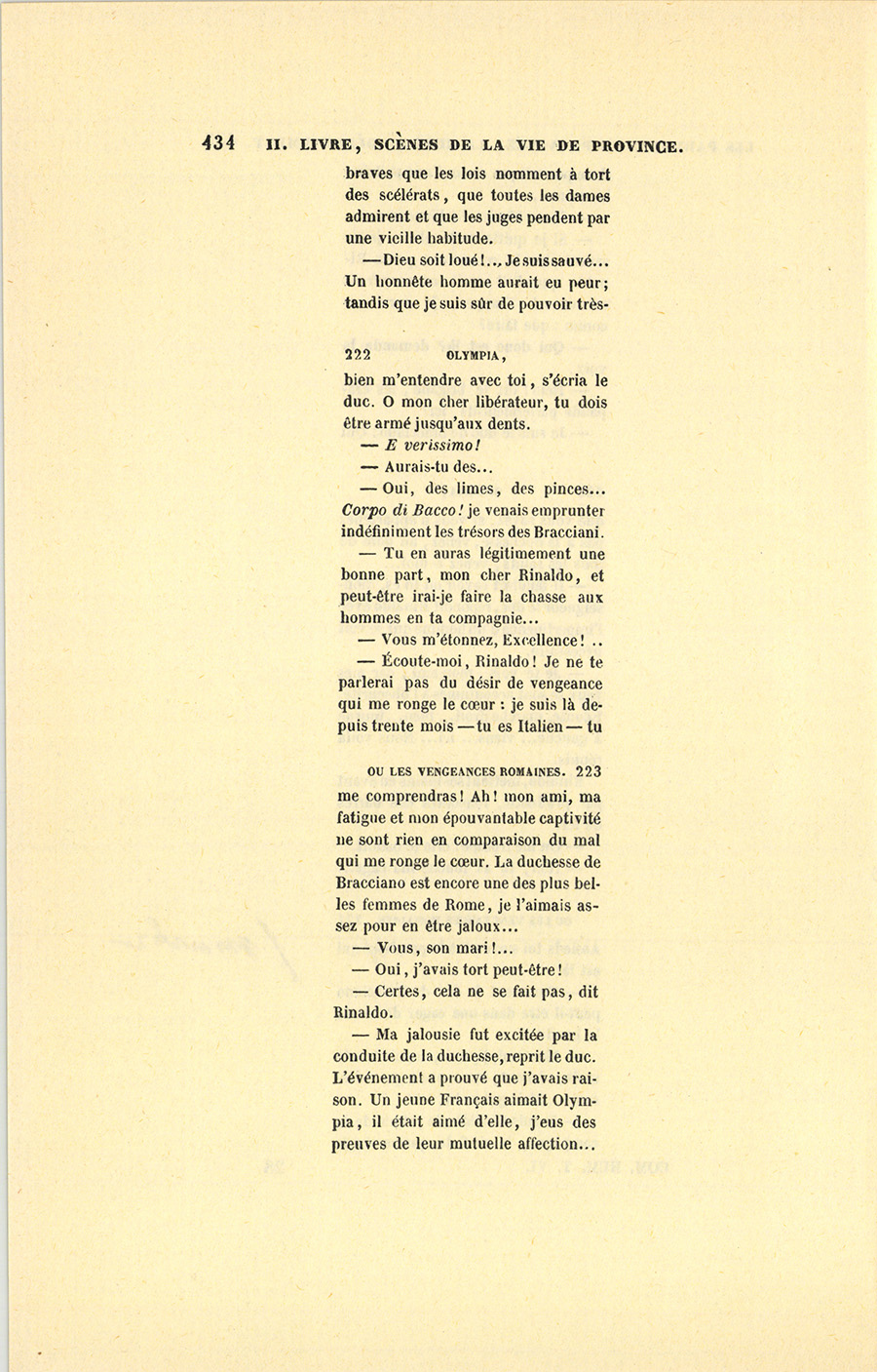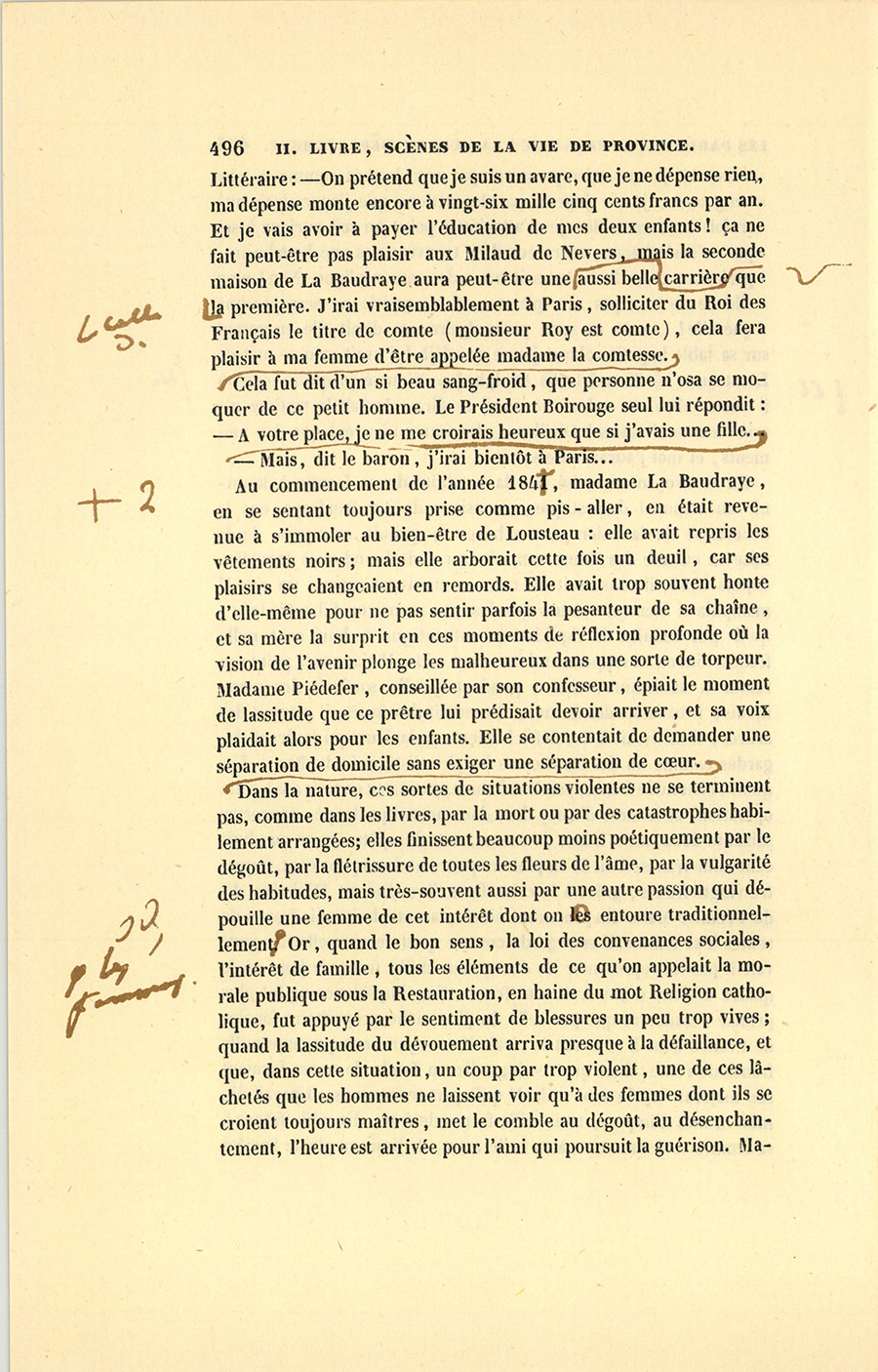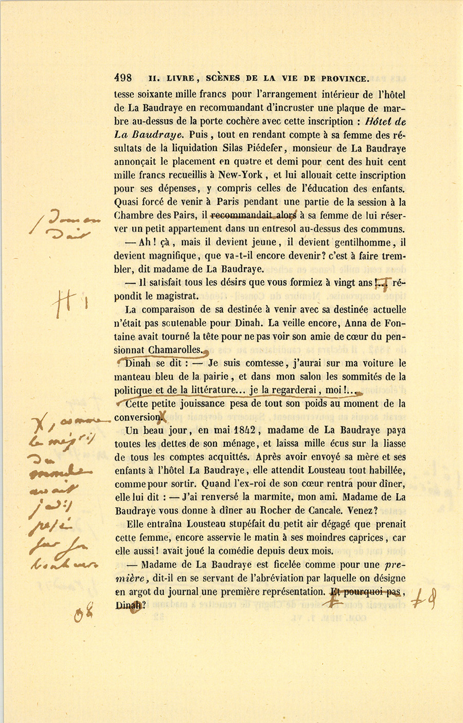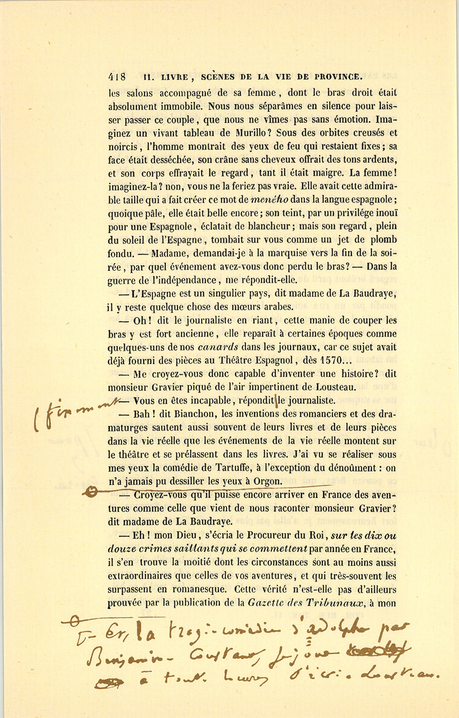 Il se jouait, en effet, dans le ménage de madame de La Baudraye une tragi-comédie en harmonie avec ses luttes relativement à la fortune, avec ses transformations successives, et dont, après l’abbé {p. 382} Duret, monsieur de Clagny seul eut connaissance, lorsque Dinah, par désœuvrement, par vanité peut être, lui livra le secret de sa gloire anonyme.