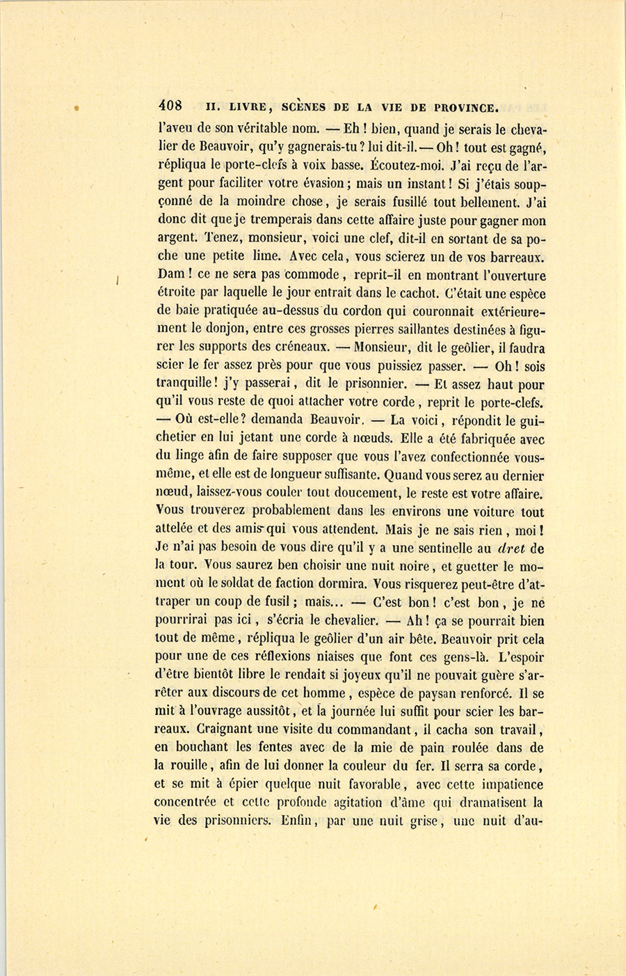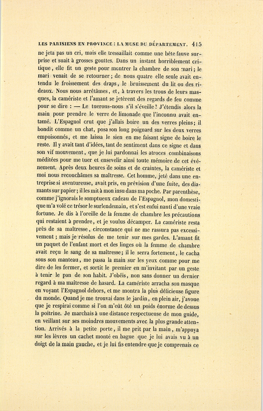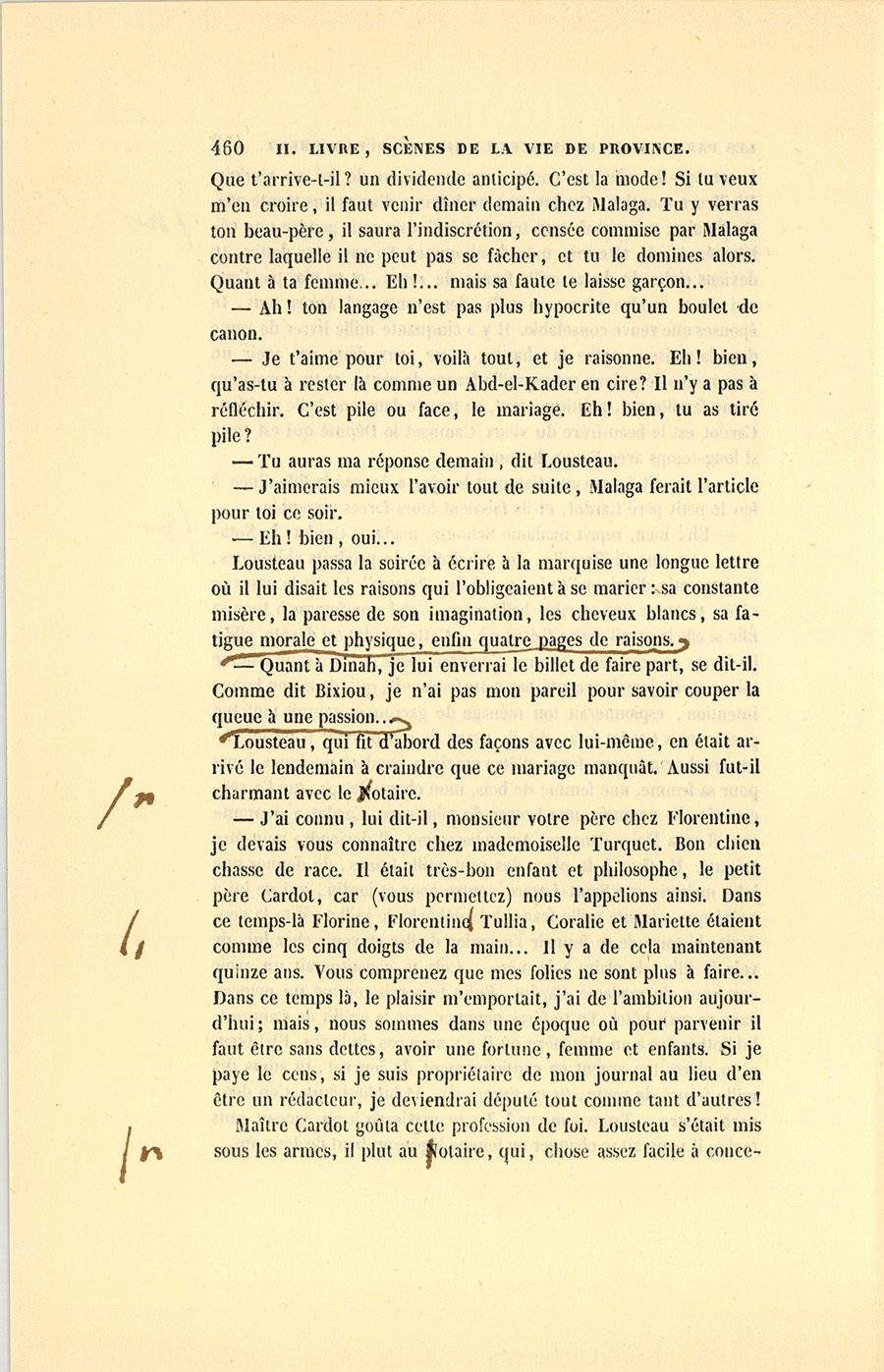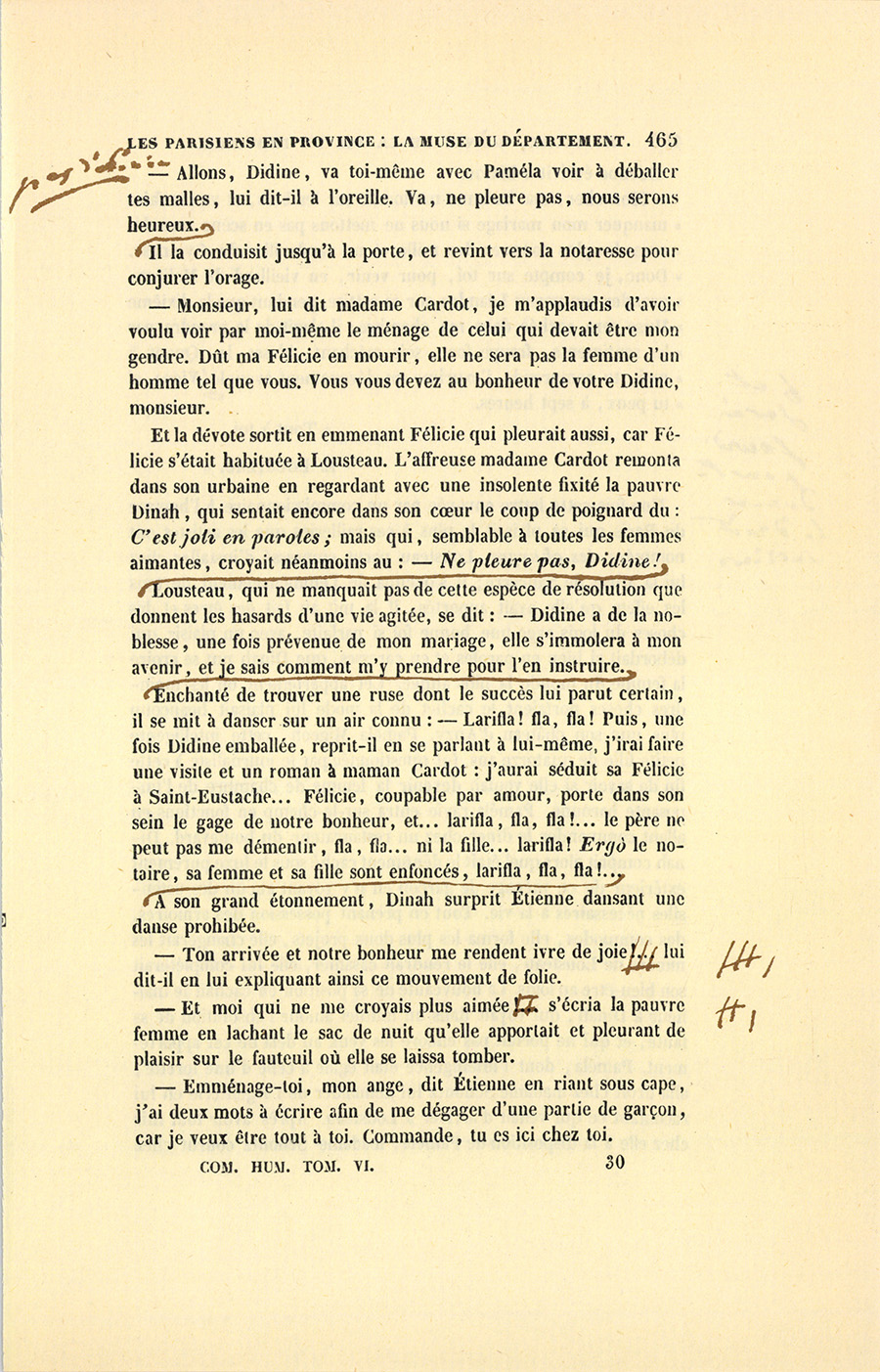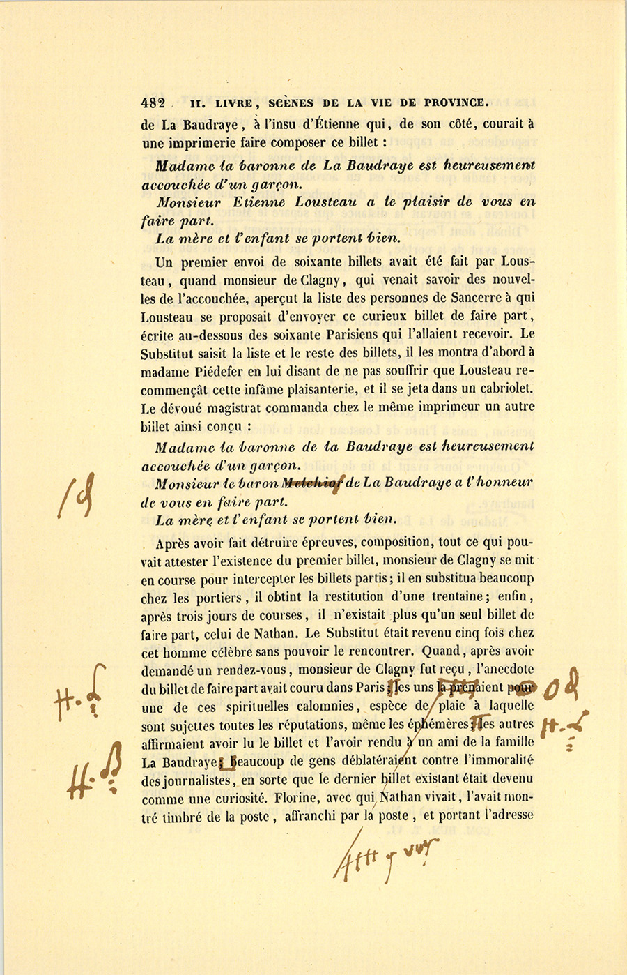 Il se jouait, en effet, dans le ménage de madame de La Baudraye une tragi-comédie en harmonie avec ses luttes relativement à la fortune, avec ses transformations successives, et dont, après l’abbé {p. 382} Duret, monsieur de Clagny seul eut connaissance, lorsque Dinah, par désœuvrement, par vanité peut être, lui livra le secret de sa gloire anonyme.