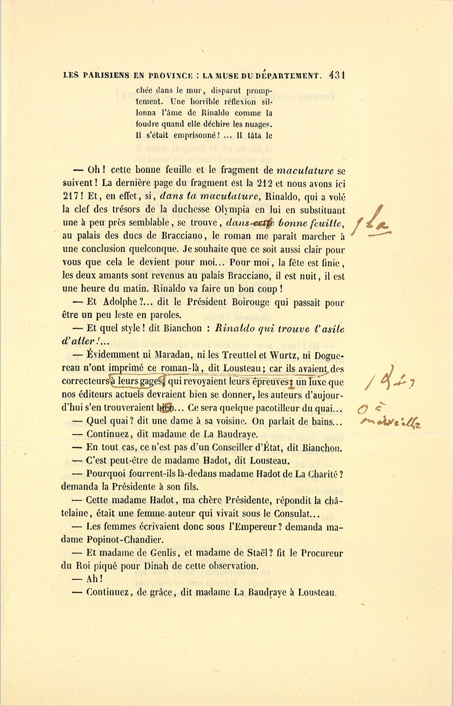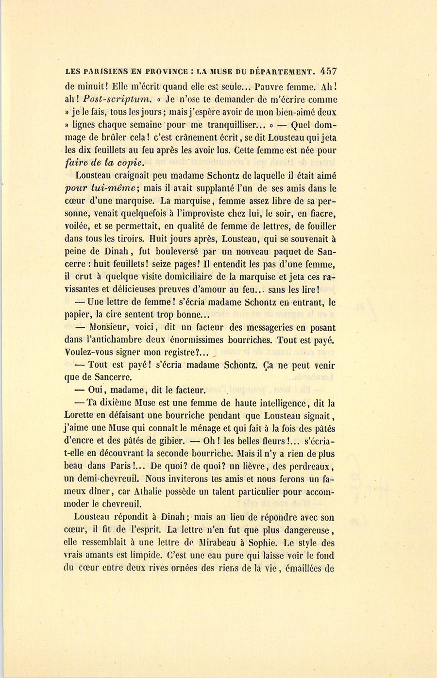 – Mais, madame, dit Lousteau, vous nous prouvez que nous sommes encore à Paris, je vous volerai cette tartine, elle me vaudra dix francs dans mon feuilleton…
