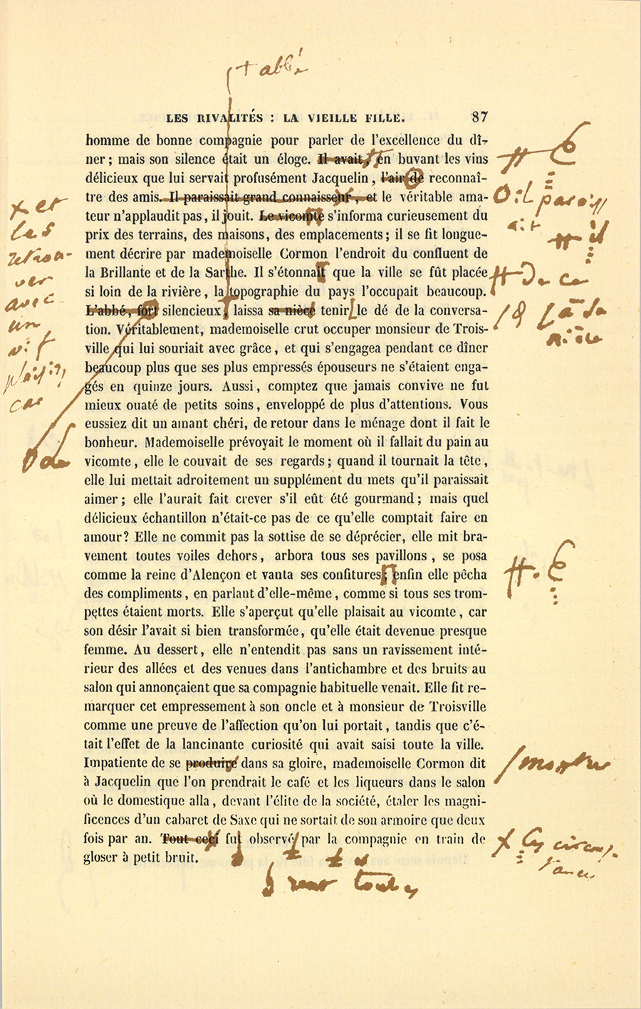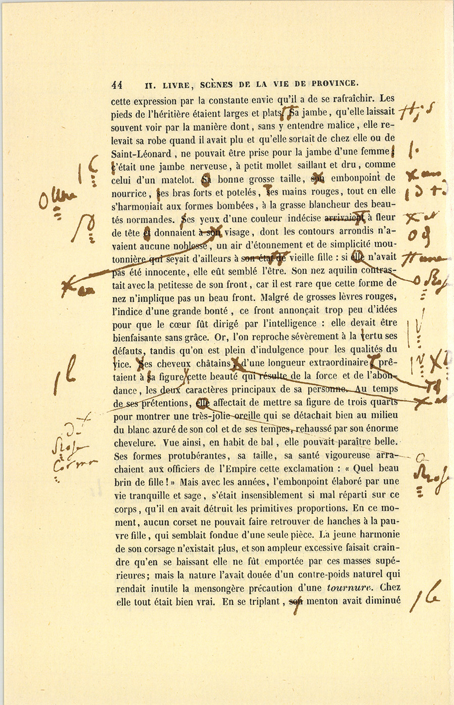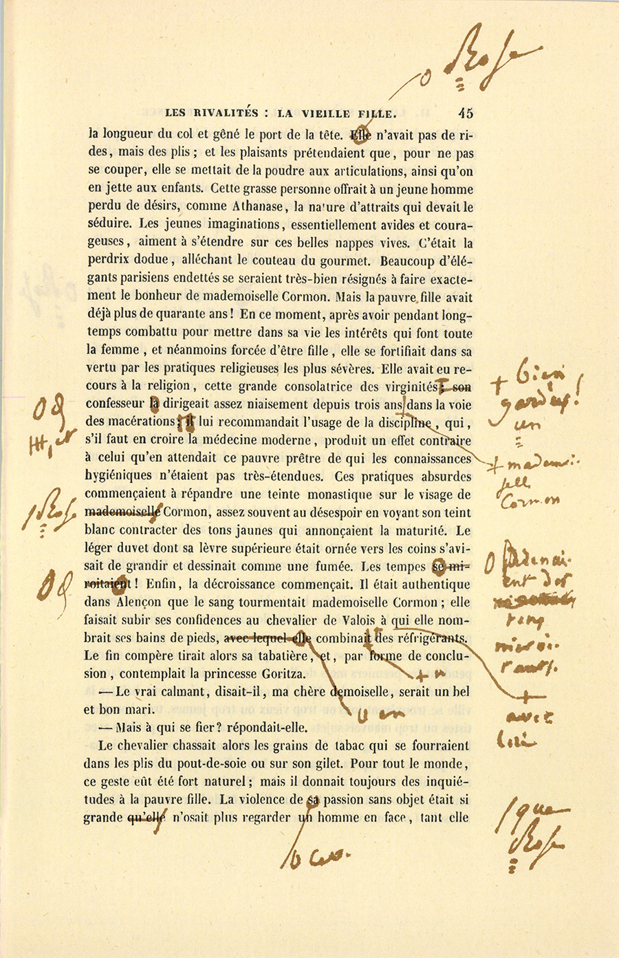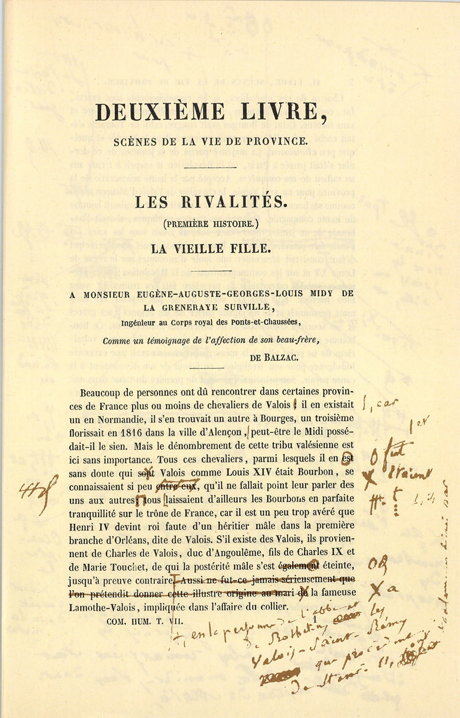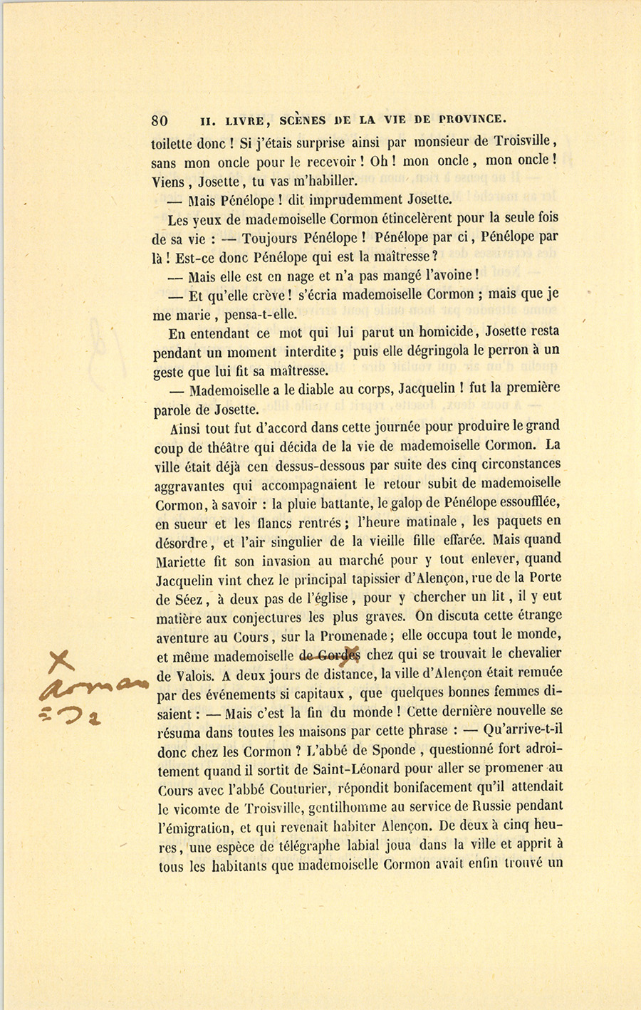 {p. 33} Maintenant il est nécessaire d’entrer chez cette vieille fille vers laquelle tant d’intérêts convergeaient, et chez qui les acteurs de cette scène devaient se rencontrer tous le soir même, à l’exception de Suzanne. Cette grande et belle personne assez hardie pour brûler ses vaisseaux, comme Alexandre, au début de la vie, et pour commencer la lutte par une faute mensongère, disparut du théâtre après y avoir introduit un violent élément d’intérêt. Ses vœux furent d’ailleurs comblés. Elle quitta sa ville natale quelques jours après, munie d’argent et de belles nippes, parmi lesquelles se trouvait une superbe robe de reps vert et un délicieux chapeau vert doublé de rose que lui donna monsieur de Valois, présent qu’elle préférait à tout, même à l’argent des dames de la Société Maternelle. Si le chevalier fût venu à Paris au moment où elle y brillait, elle eût certes tout quitté pour lui. Semblable à la chaste Suzanne de la Bible, que les vieillards avaient à peine entrevue, elle s’établissait heureuse et pleine d’espoir à Paris, pendant que tout Alençon déplorait ses malheurs pour lesquels les dames des deux Sociétés de Charité et de Maternité manifestèrent une vive sympathie. Si Suzanne peut offrir une image de ces belles normandes qu’un savant médecin a comprises pour un tiers dans la consommation que fait en ce genre le monstrueux Paris, elle resta dans les régions les plus élevées et les plus décentes de la galanterie. Par une époque où, comme le disait monsieur de Valois, la Femme n’existait plus, elle fut seulement madame du Valnoble ; autrefois elle eût été la rivale des Rhodope, des Impéria, des Ninon. Un des écrivains les plus distingués de la Restauration l’a prise sous sa protection ; peut-être l’épousera-t-il ? il est journaliste, et partant au-dessus de l’opinion, puisqu’il en fabrique une nouvelle tous les six ans.