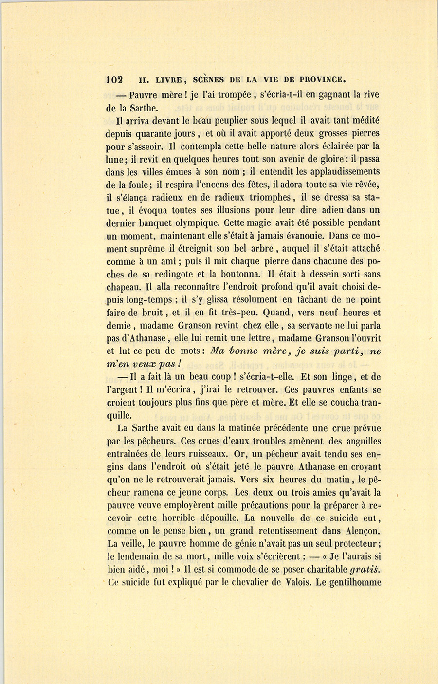 {p. 102} – Pauvre mère ! je l’ai trompée, s’écria-t-il en gagnant la rive de la Sarthe.