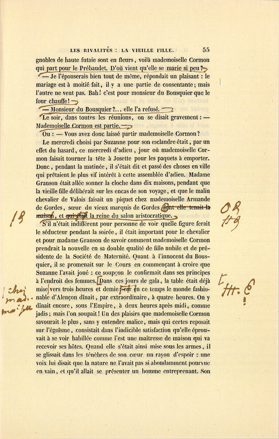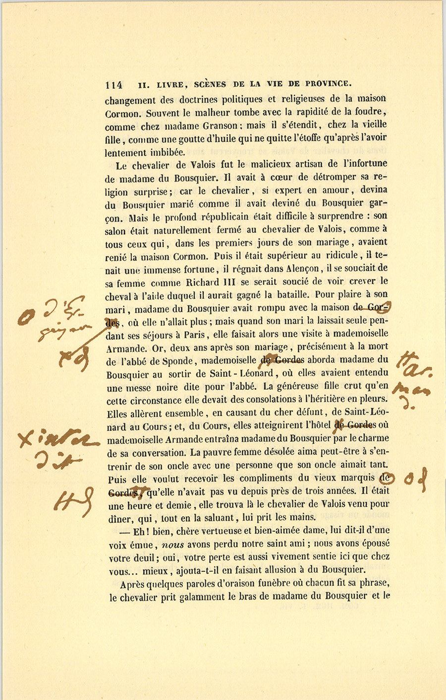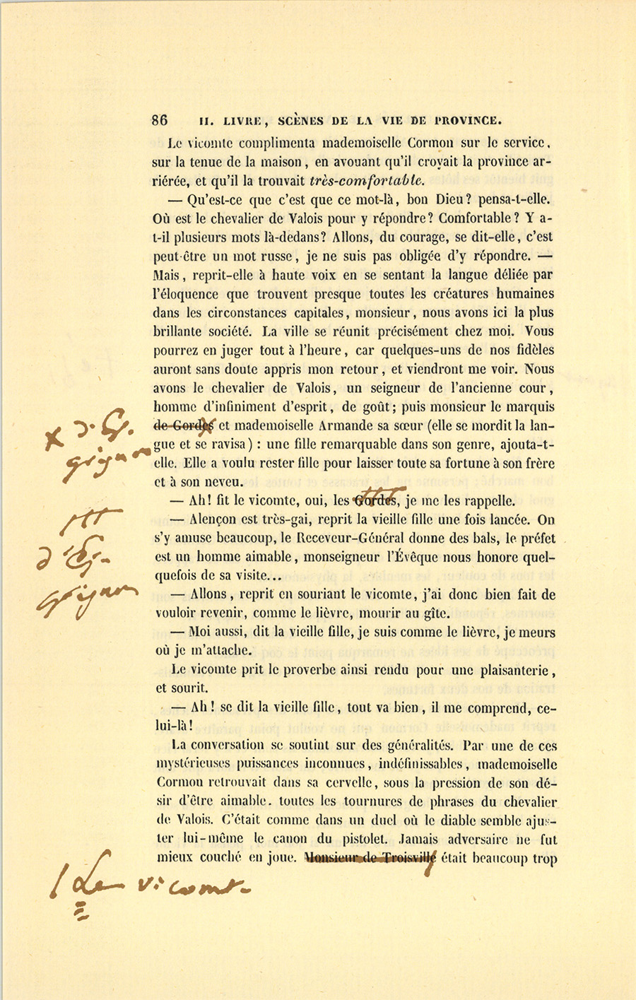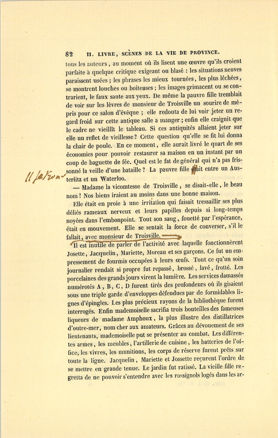 – Ma foi, dit du Bousquier, si le vicomte de Troisville en veut, elle est à lui pour quarante mille francs. Elle me devient fort {p. 94} inutile ! Si mademoiselle me le permet… Il faut que cela se sache. – Mademoiselle, puis-je le dire ? – Oui ! – Hé ! bien, soyez le premier, mon cher chevalier, à qui j’apprenne… (mademoiselle Cormon baissa les yeux) l’honneur, dit l’ancien fournisseur, la faveur que me fait mademoiselle, et que j’ai gardée sous le secret depuis quelques mois. Nous nous marions dans quelques jours, le contrat est rédigé, nous le signerons demain. Vous comprenez que ma maison de la19 rue du Cygne me devient inutile. Je cherchais sous main des acquéreurs, et l’abbé de Sponde, qui le savait, a naturellement conduit chez moi monsieur de Troisville…
