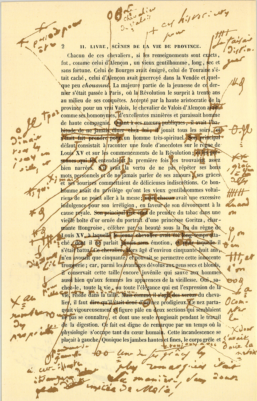 Alençon fut témoin d’un suicide continu bien autrement pitoyable, car Athanase fut promptement oublié par la société qui veut et doit promptement oublier ses morts. Le pauvre chevalier de Valois mourut de son vivant, il se suicida tous les matins pendant quatorze ans. Trois mois après le mariage de du Bousquier, la société remarqua, non sans étonnement, que le linge du chevalier devenait roux, et ses cheveux furent irrégulièrement peignés. Ébouriffé, le chevalier de Valois n’existait plus ! Quelques dents d’ivoire désertèrent sans que les observateurs du cœur humain pussent découvrir à quel corps elles avaient appartenu, si elles étaient de la légion étrangère ou indigènes, végétales ou animales, si l’âge les arrachait au chevalier ou si elles étaient oubliées dans le tiroir de sa toilette. La cravate se roula sur elle-même, indifférente à l’élégance ! Les têtes de nègre pâlirent en s’encrassant. Les rides du visage se plissèrent, se noircirent et la peau se parchemina. Les ongles incultes se bordèrent parfois d’un liséré de velours noir. Le gilet se montra sillonné de roupies oubliées qui s’étalèrent comme des feuilles d’automne. Le coton des oreilles ne fut plus que rarement renouvelé. La tristesse siégea sur ce front et glissa ses teintes jaunes au fond des rides. Enfin, les ruines si savamment réprimées lézardèrent ce bel édifice et montrèrent combien l’âme a de puissance sur le corps ; puisque l’homme blond, le {p. 106} cavalier, le jeune premier mourut quand faillit l’espoir. Jusqu’alors, le nez du chevalier s’était produit sous une forme gracieuse ; jamais il n’en était tombé ni pastille noire humide ni goutte d’ambre ; mais le nez du chevalier barbouillé de tabac qui débordait sous les narines, et déshonoré par les roupies qui profitaient de la gouttière située au milieu de la lèvre supérieure ; ce nez, qui ne se souciait plus de paraître aimable, révéla les énormes soins que le chevalier prenait autrefois de lui-même et fit comprendre, par leur étendue, la grandeur, la persistance des desseins de l’homme sur mademoiselle Cormon. Il fut écrasé par un calembour de du Coudrai qu’il fit d’ailleurs destituer. Ce fut la première vengeance que le bénin chevalier poursuivit ; mais ce calembour était assassin et dépassait de cent coudées tous les calembours du Conservateur des hypothèques. Monsieur du Coudrai, voyant cette révolution nasale, avait nommé le chevalier Nérestan. Enfin, les anecdotes imitèrent les dents ; puis les bons mots devinrent rares ; mais l’appétit se soutint, le gentilhomme ne sauva que l’estomac dans ce naufrage de toutes ses espérances ; s’il prépara mollement ses prises, il mangea toujours effroyablement. Vous devinerez le désastre que cet événement amena dans les idées en apprenant que monsieur de Valois s’entretint moins fréquemment avec la princesse Goritza. Un jour il vint chez mademoiselle Armande avec un mollet devant son tibia. Cette banqueroute des grâces fut horrible, je vous jure, et frappa tout Alençon. Ce quasi-jeune homme devenu vieillard, ce personnage qui sous l’affaissement de son âme passait de cinquante à quatre-vingt-dix ans, effraya la société. Puis il livra son secret, il avait attendu, guetté mademoiselle Cormon ; il avait, chasseur patient, ajusté son coup pendant dix ans, et il avait manqué la bête. Enfin la République impuissante l’emportait sur la vaillante Aristocratie et en pleine Restauration. La forme triomphait du fond, l’esprit était vaincu par la matière, la diplomatie par l’insurrection. Dernier malheur ! une grisette blessée révéla le secret des matinées du chevalier, il passa pour un libertin. Les Libéraux lui jetèrent les enfants trouvés de du Bousquier, et le faubourg Saint-Germain d’Alençon les accepta très-orgueilleusement ; il en rit, il dit : – Ce bon chevalier, que vouliez-vous qu’il fît ? Il plaignit le chevalier, le mit dans son giron, ranima ses sourires, et une haine effroyable s’amassa sur la tête de du Bousquier. Onze personnes passèrent aux d’Esgrignon et quittèrent le salon Cormon.