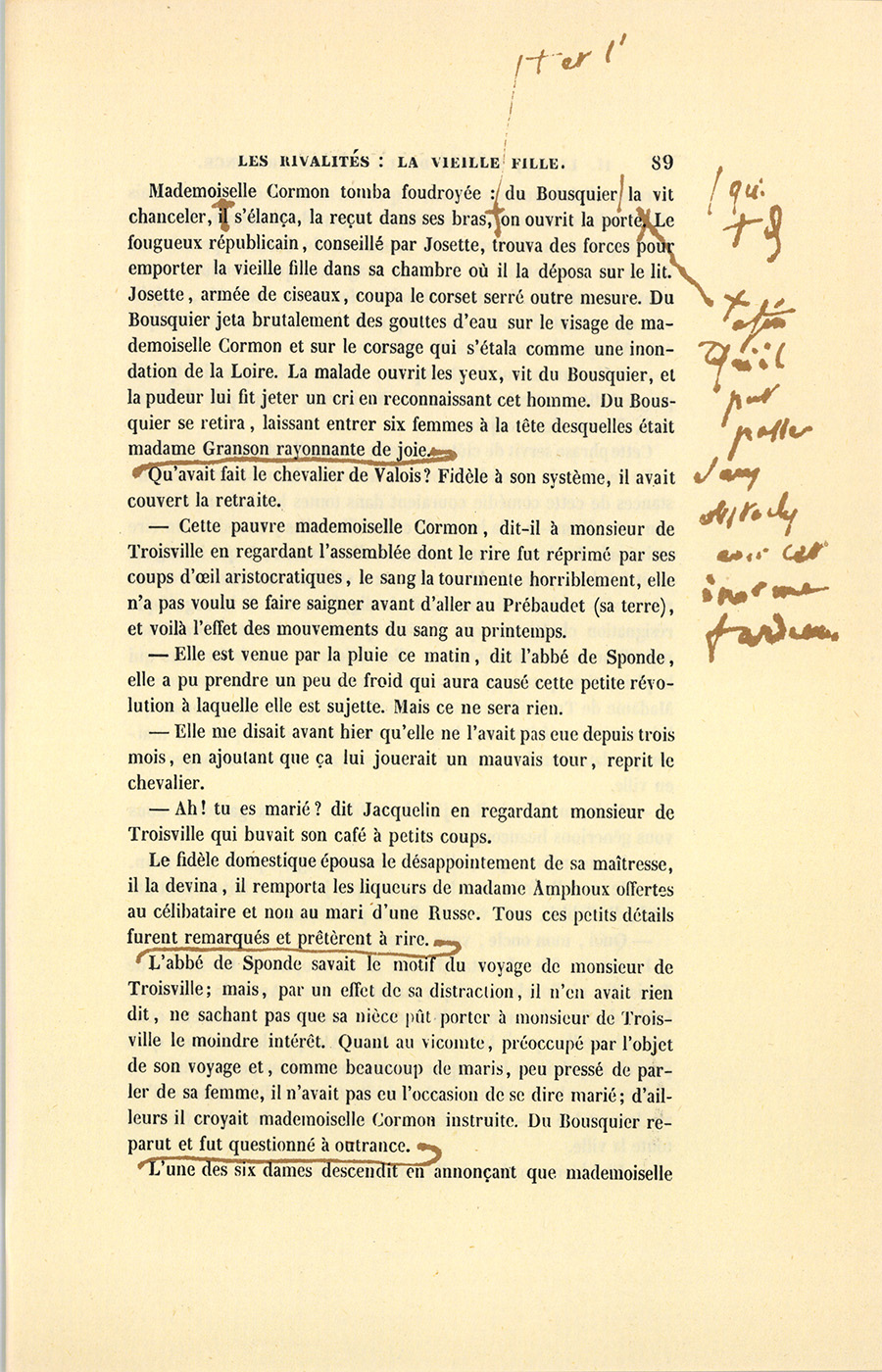 Madame du Bousquier vit encore, n’est-ce pas dire qu’elle souffre toujours ? En atteignant à l’âge de soixante ans, époque à laquelle les femmes se permettent des aveux, elle a dit en confidence à madame du Coudrai dont le mari retrouva sa place en août 1830, qu’elle ne supportait pas l’idée de mourir fille.