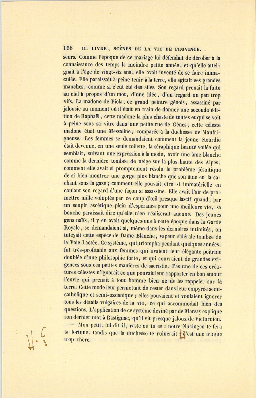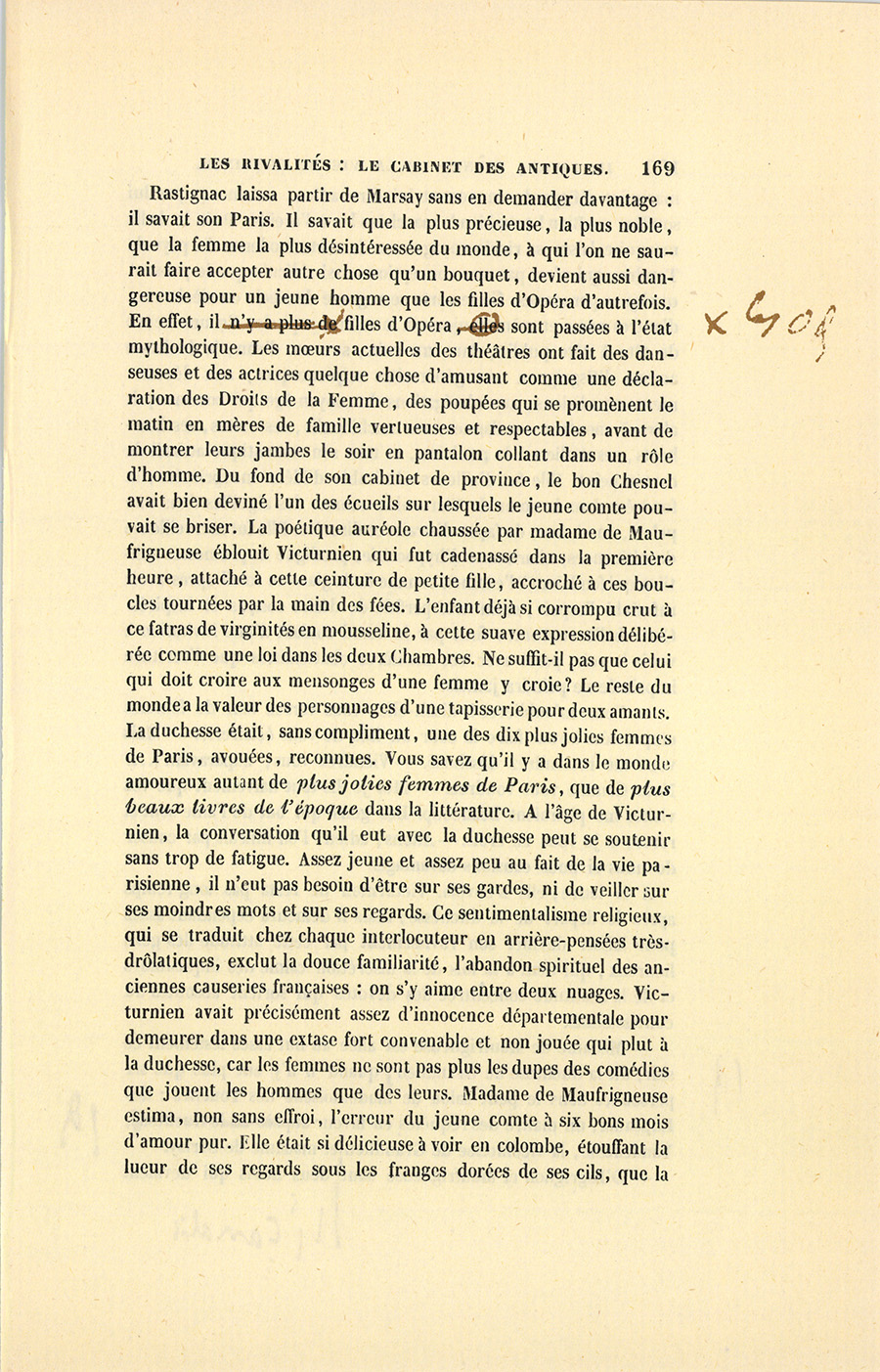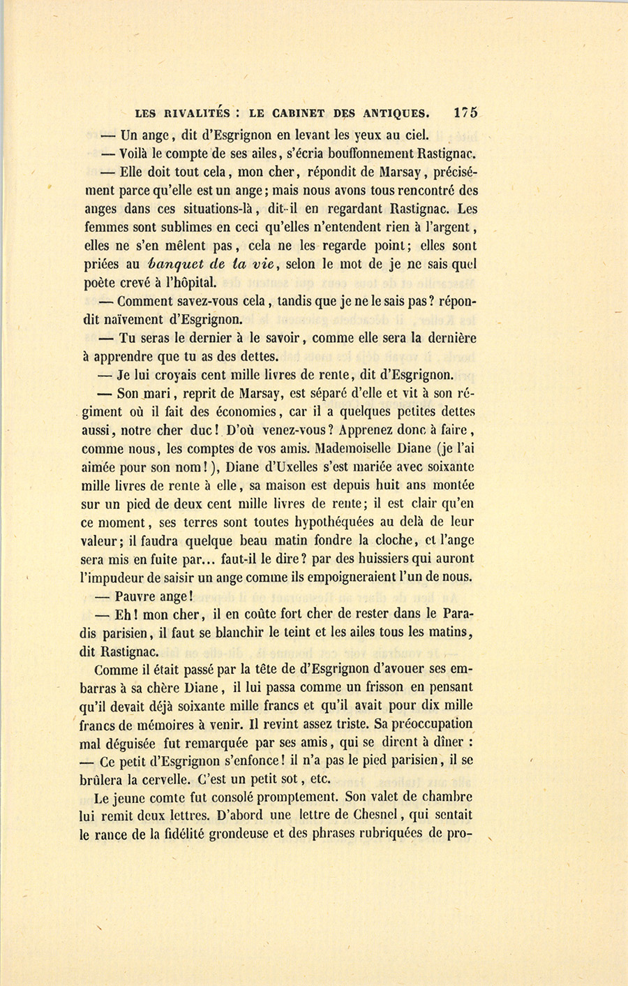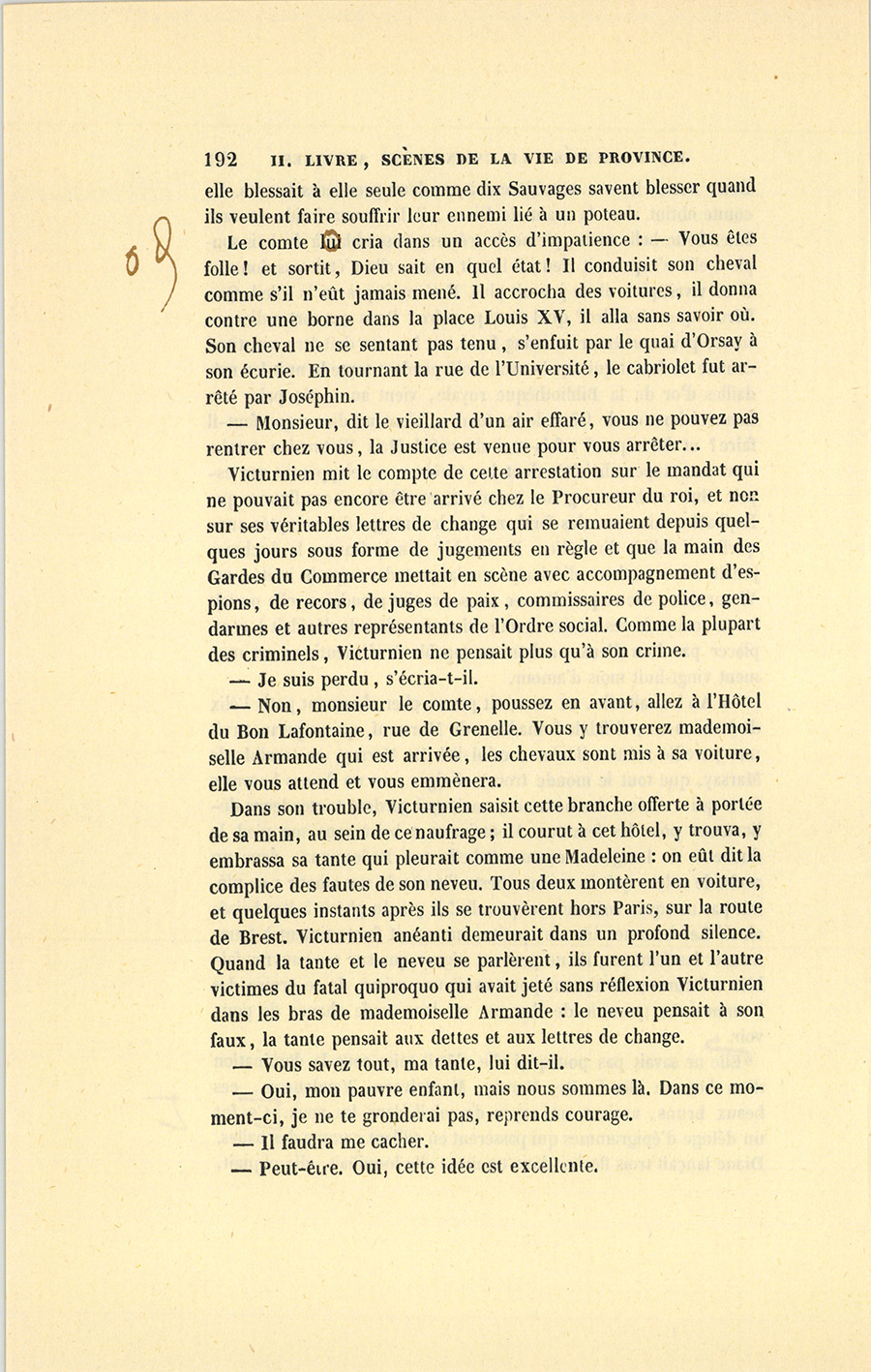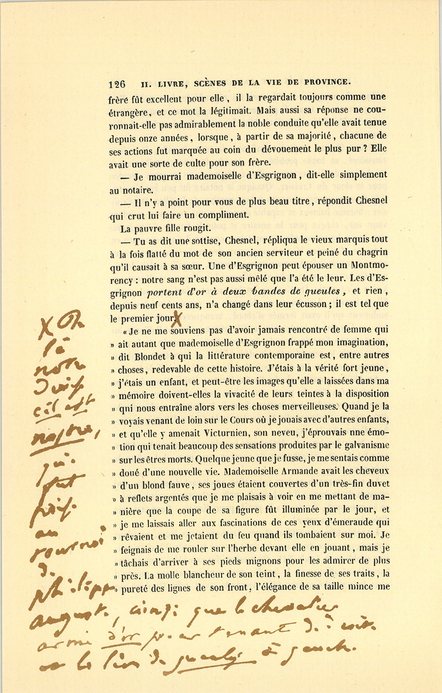 {p. 233} – C’est la duchesse de Maufrigneuse, envoyée par le Roi pour sauver le jeune d’Esgrignon, arrêté hier par suite d’une plainte en faux portée par du Croisier. Madame la duchesse a la parole du Garde des Sceaux, il ratifiera les promesses qu’elle nous fera…