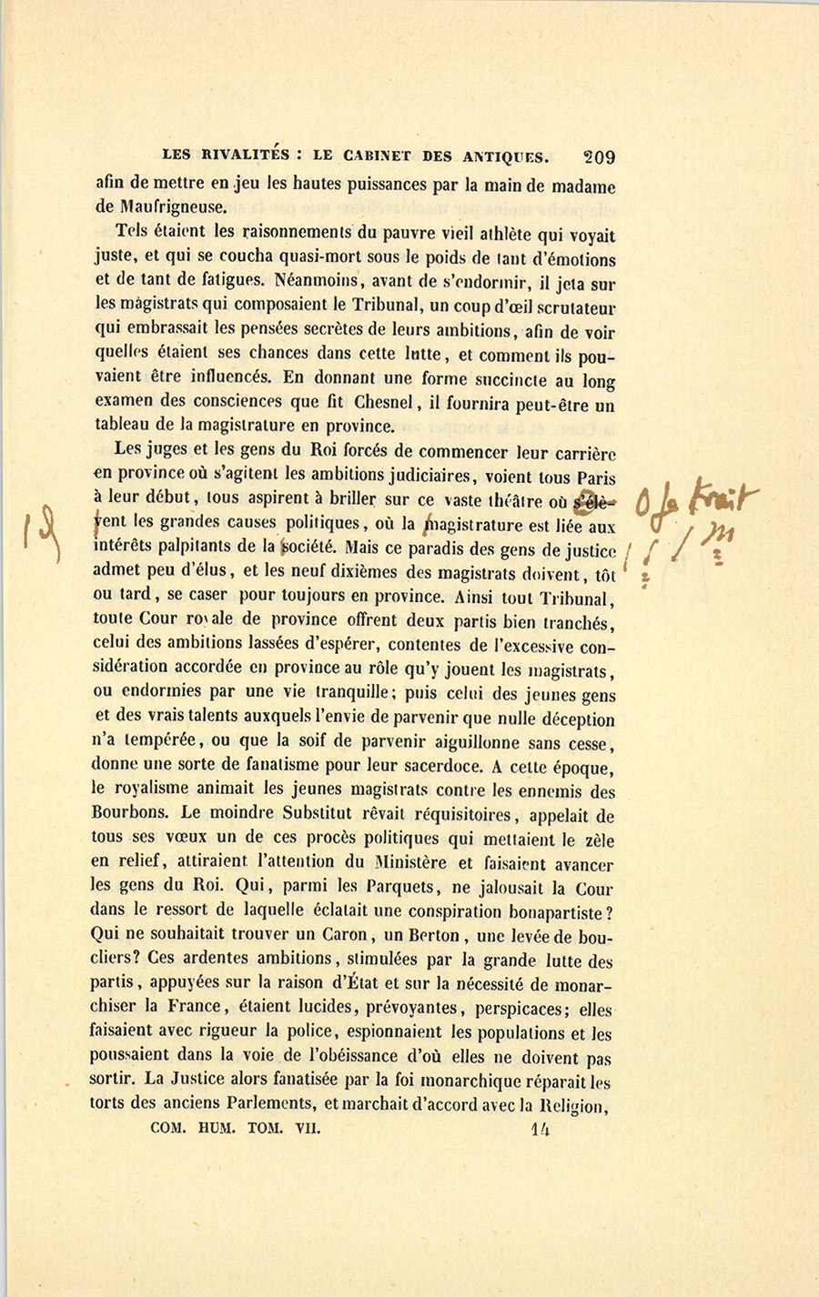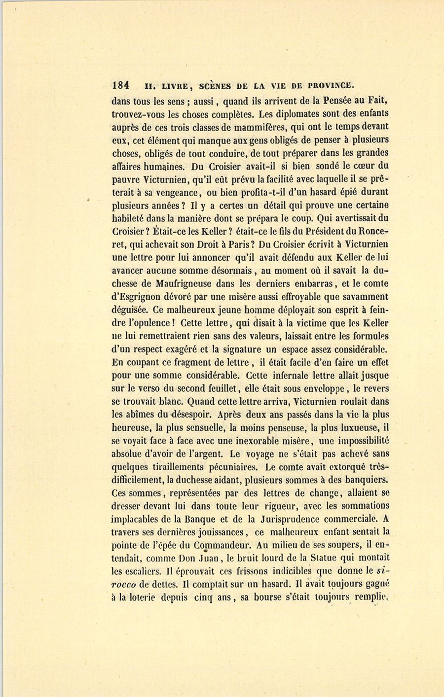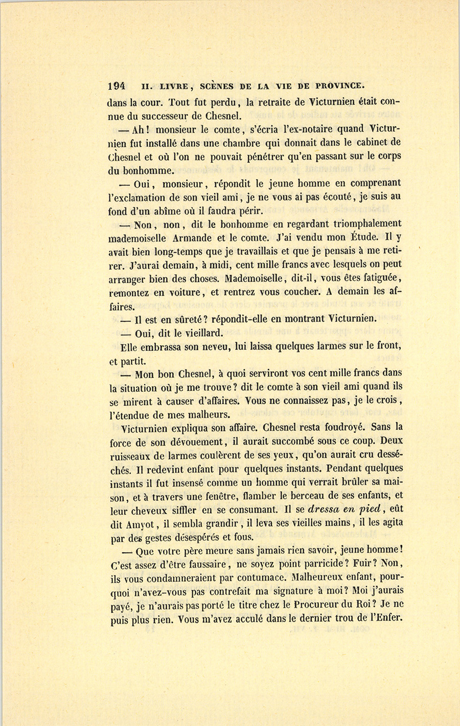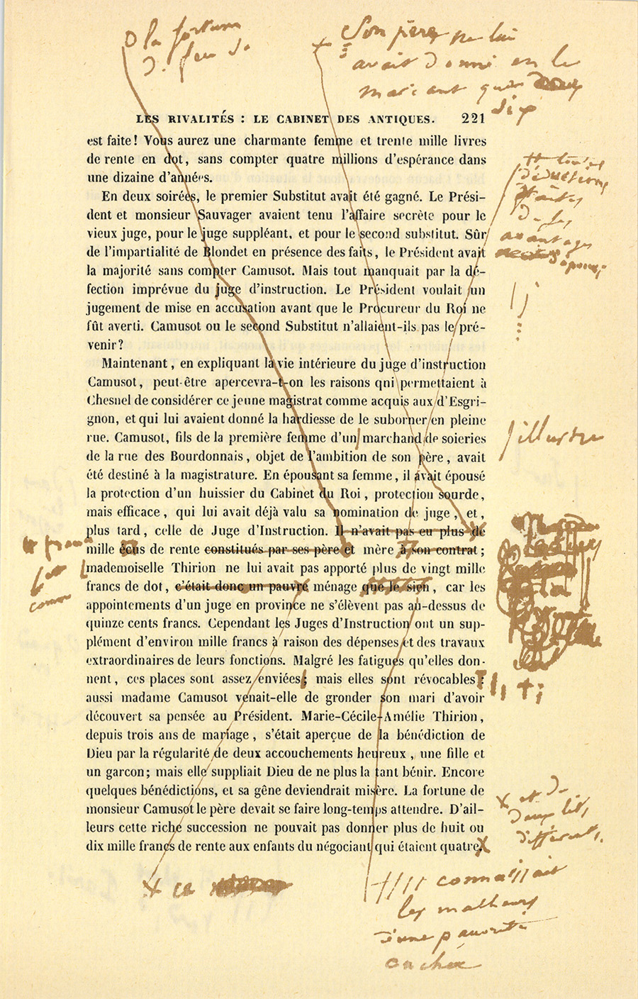 – Vous croyez, dit Camusot. Mais d’abord, en supposant que {p. 235} le jeune comte n’ait pas eu le droit de tirer sur du Croisier, il n’y aurait pas imitation de signature. Mais il s’est cru ce droit par l’avis que Chesnel lui a donné d’un versement opéré par lui Chesnel.