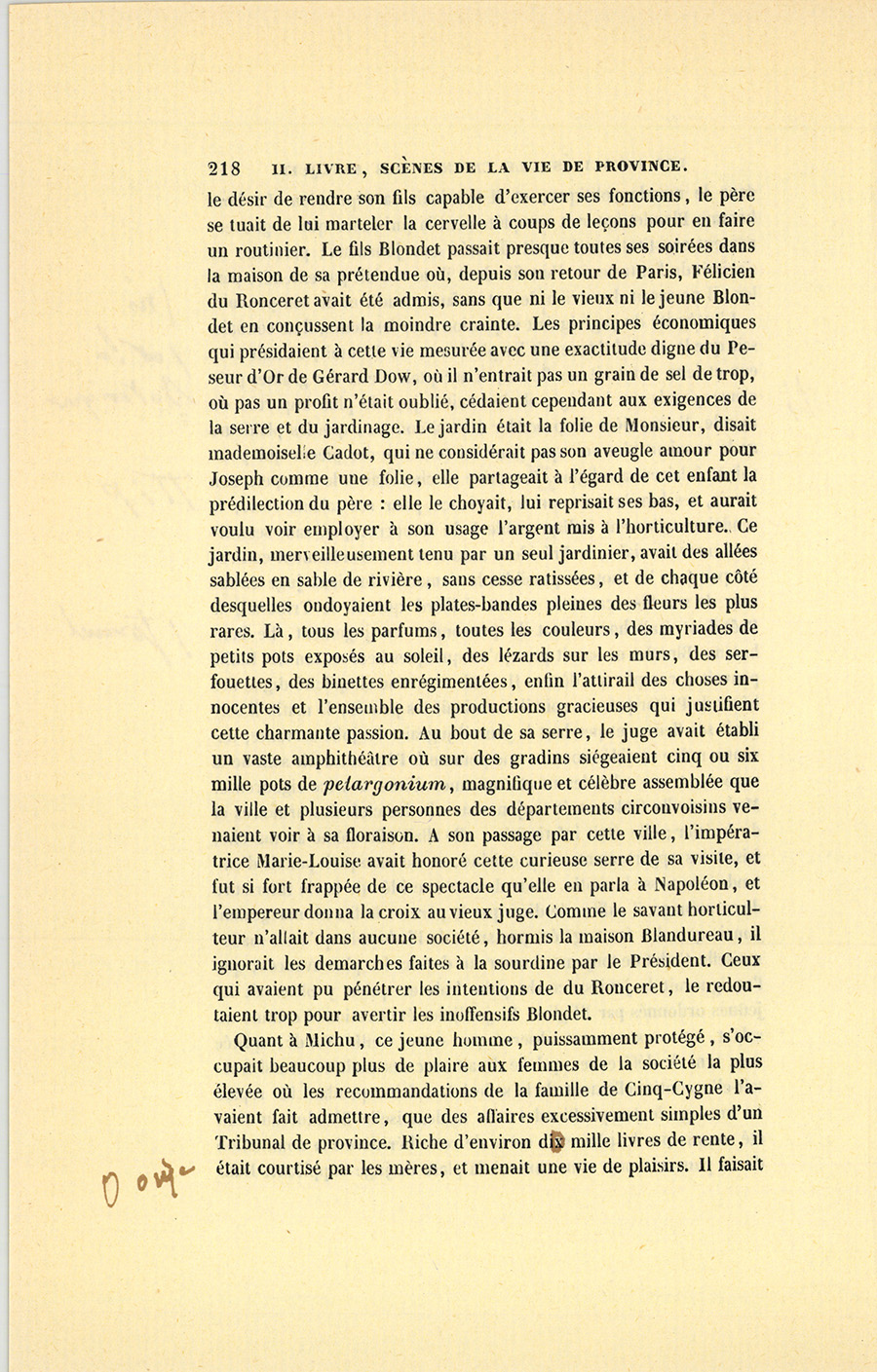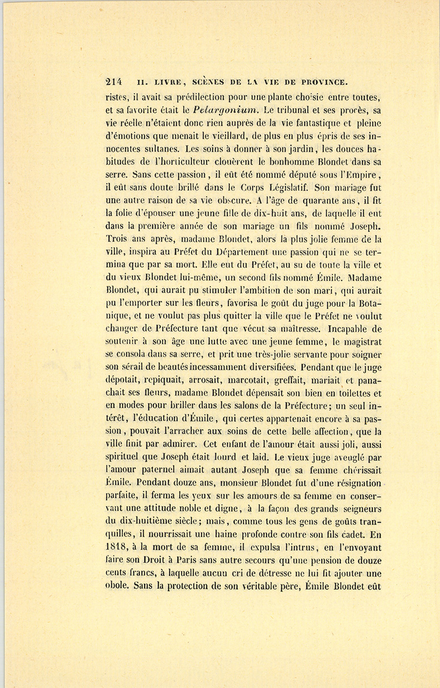 – Monsieur, passez là, vous verrez mes pélargonium28, un spectacle magique à la floraison. Pourquoi, dit-il à madame Camusot, me parlez-vous de ces affaires devant votre cousin ?