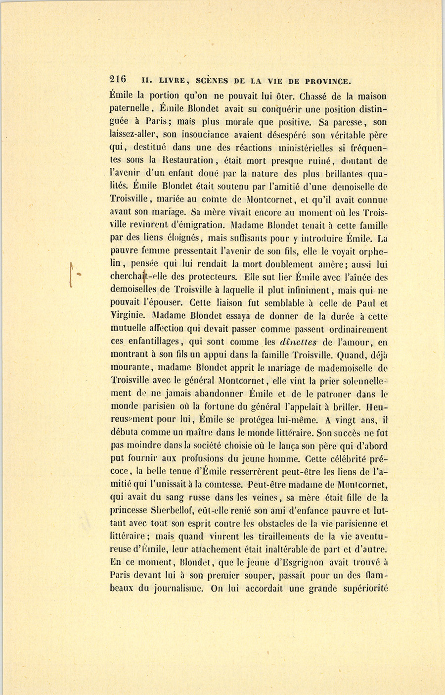 – Mais, monsieur, quand un jeune homme vif et bouillant reste oisif dans une ville comme celle-ci, que voulez-vous qu’il fasse ? dit mademoiselle d’Esgrignon qui ne comprenait pas la colère de son frère.
