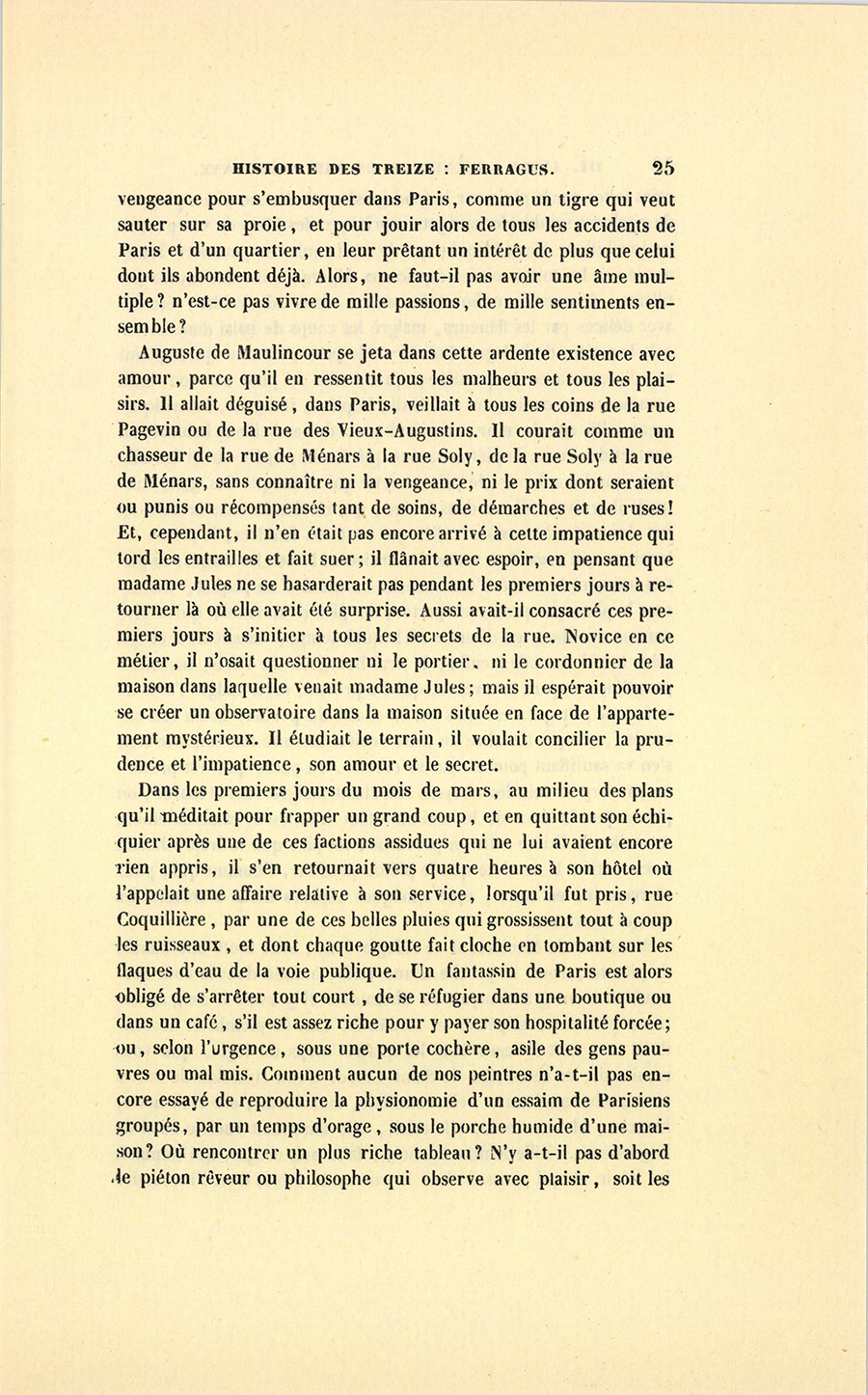 Jules, auquel Jacquet fut forcé de parler de ce délai, comprit ce qu’il avait entendu dire à Ferragus : Brûler Paris. Rien ne lui semblait plus naturel que d’anéantir ce réceptacle de monstruosités.
