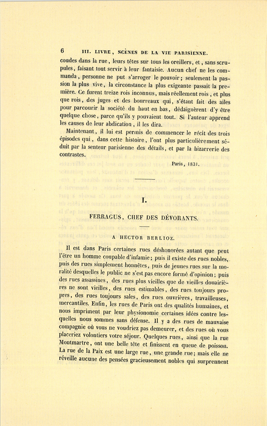 Ici semble finir le récit de cette histoire ; mais peut-être serait-elle incomplète si, après avoir donné un léger croquis de la vie parisienne, si, après en avoir suivi les capricieuses ondulations, les effets de la mort y étaient oubliés. La mort, dans Paris, ne {p. 99} ressemble à la mort dans aucune capitale, et peu de personnes connaissent les débats d’une douleur vraie aux prises avec la civilisation, avec l’administration parisienne. D’ailleurs, peut-être monsieur Jules et Ferragus XXIII intéressent-ils assez pour que le dénoûment de leur vie soit dénué de froideur. Enfin beaucoup de gens aiment à se rendre compte de tout, et voudraient, ainsi que l’a dit le plus ingénieux de nos critiques, savoir par quel procédé chimique l’huile brûle dans la lampe d’Aladin. Jacquet, homme administratif, s’adressa naturellement à l’autorité pour en obtenir la permission d’exhumer le corps de madame Jules et de le brûler. Il alla parler au Préfet de police, sous la protection de qui dorment les morts. Ce fonctionnaire voulut une pétition. Il fallut acheter une feuille de papier timbré, donner à la douleur une forme administrative ; il fallut se servir de l’argot bureaucratique pour exprimer les vœux d’un homme accablé, auquel les paroles manquaient ; il fallut traduire froidement et mettre en marge l’objet de la demande :
