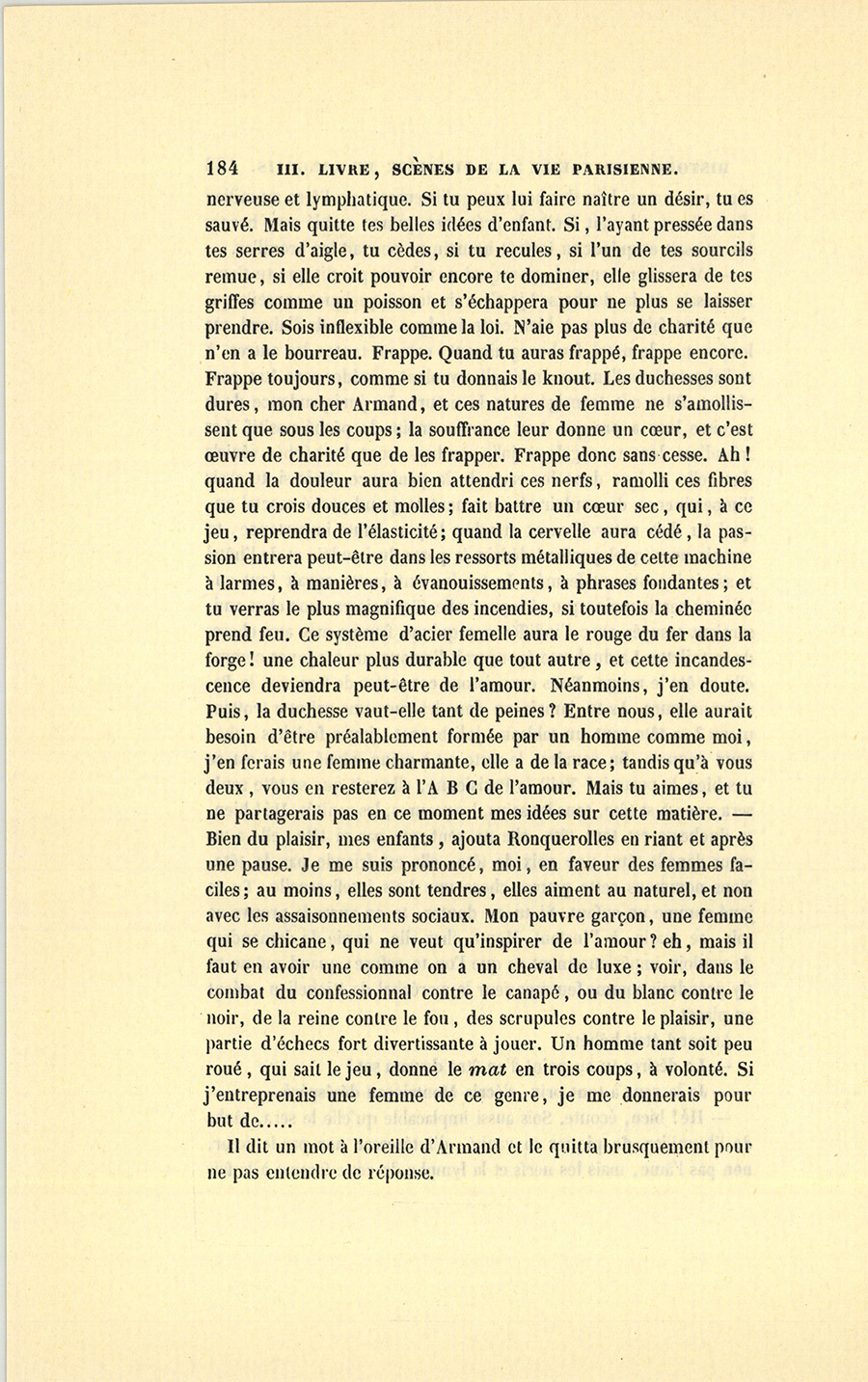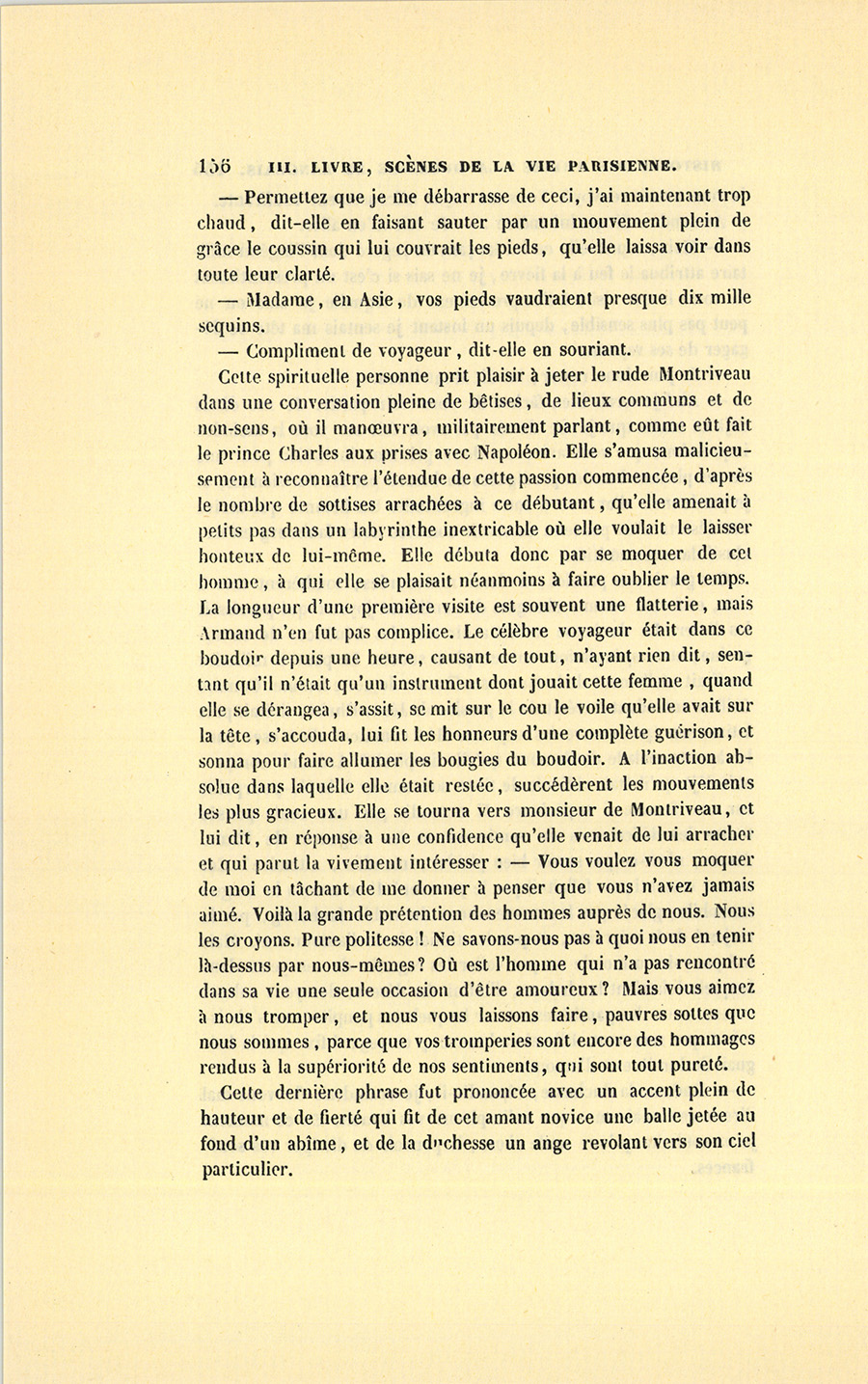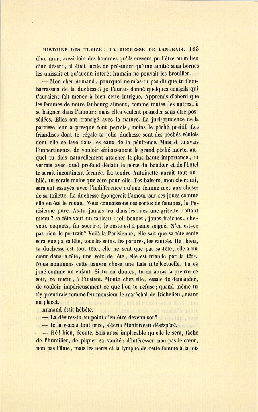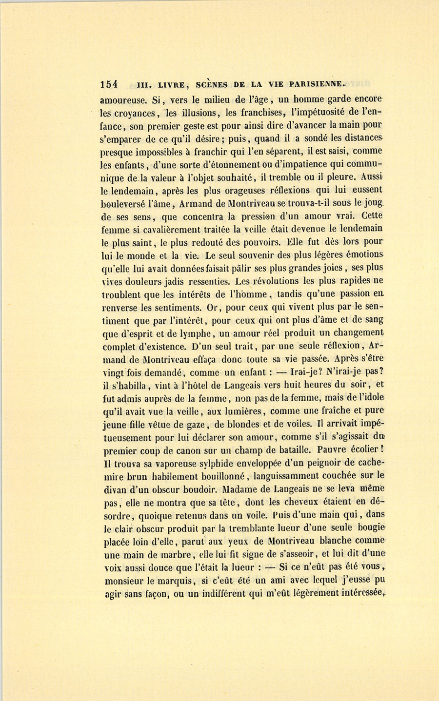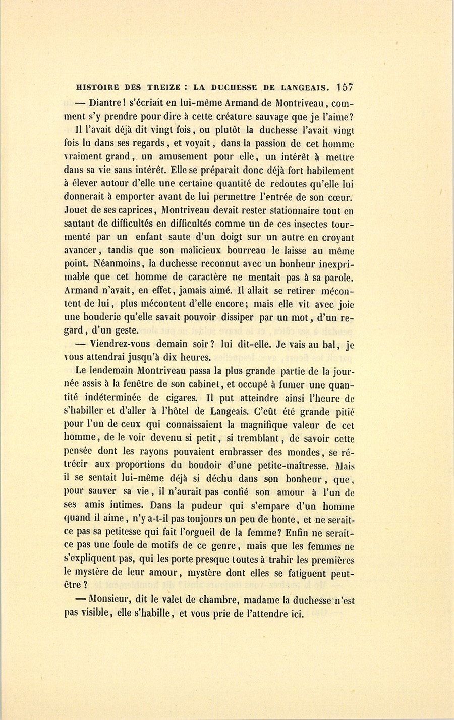 {p. 157} – Diantre ! s’écriait en lui-même Armand de Montriveau, comment s’y prendre pour dire à cette créature sauvage que je l’aime ?