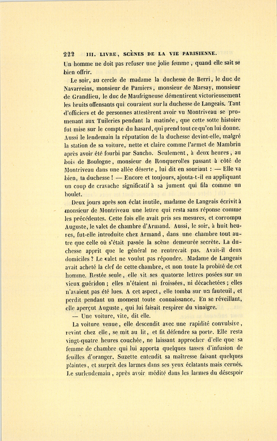 – Non, chère mère, je ne suis pas sortie. Et, dit-elle en se retournant pour saluer le vidame et le marquis, j’ai voulu que tout Paris me crût chez monsieur de Montriveau.