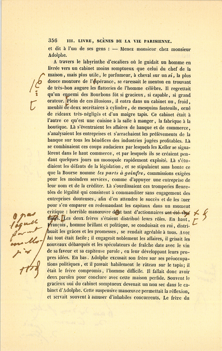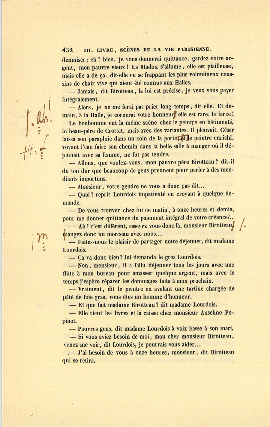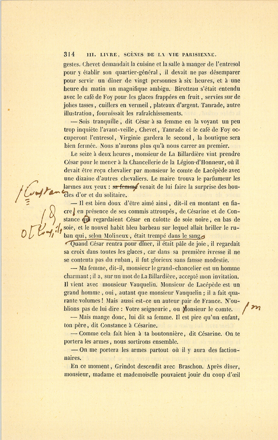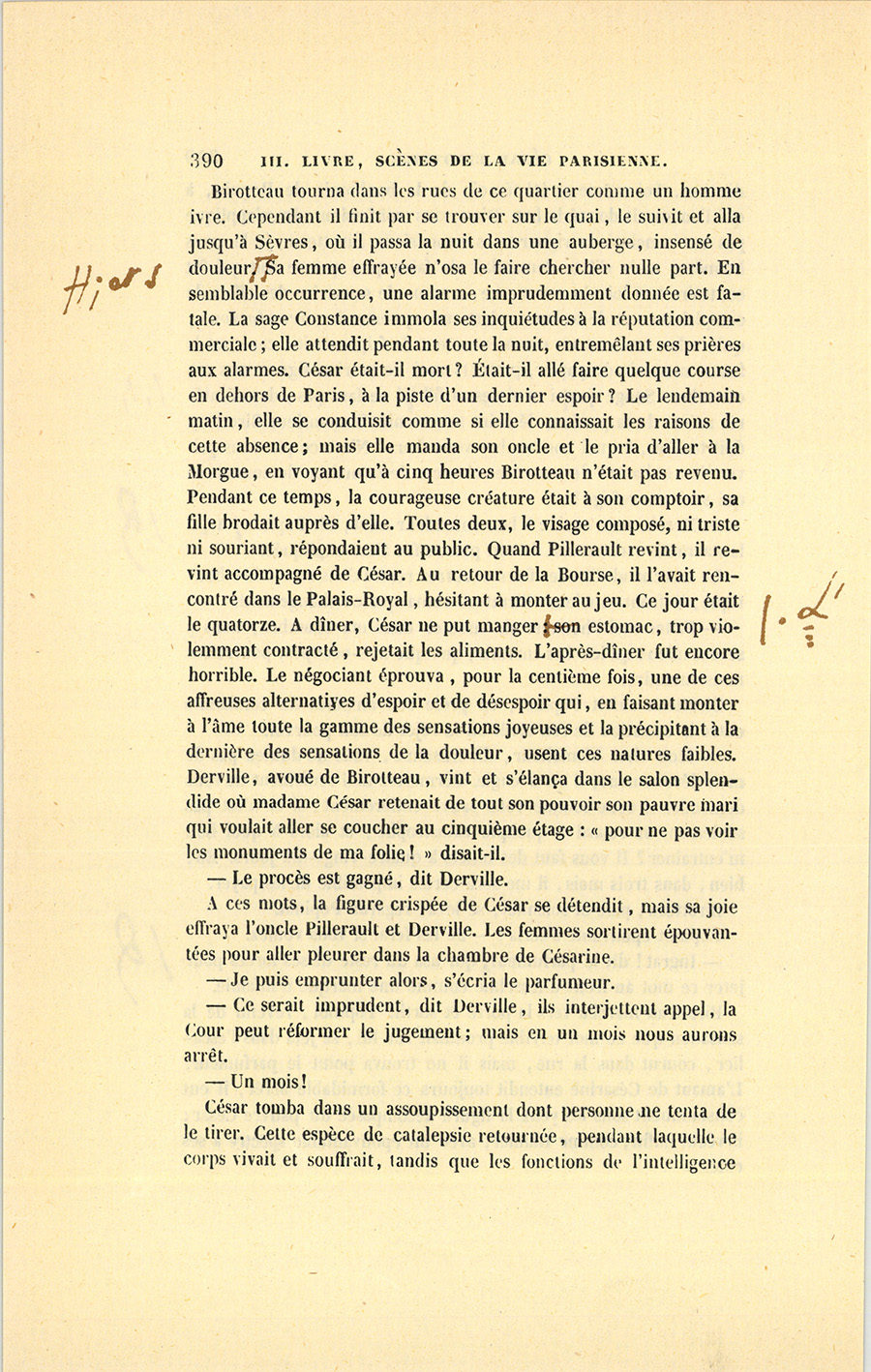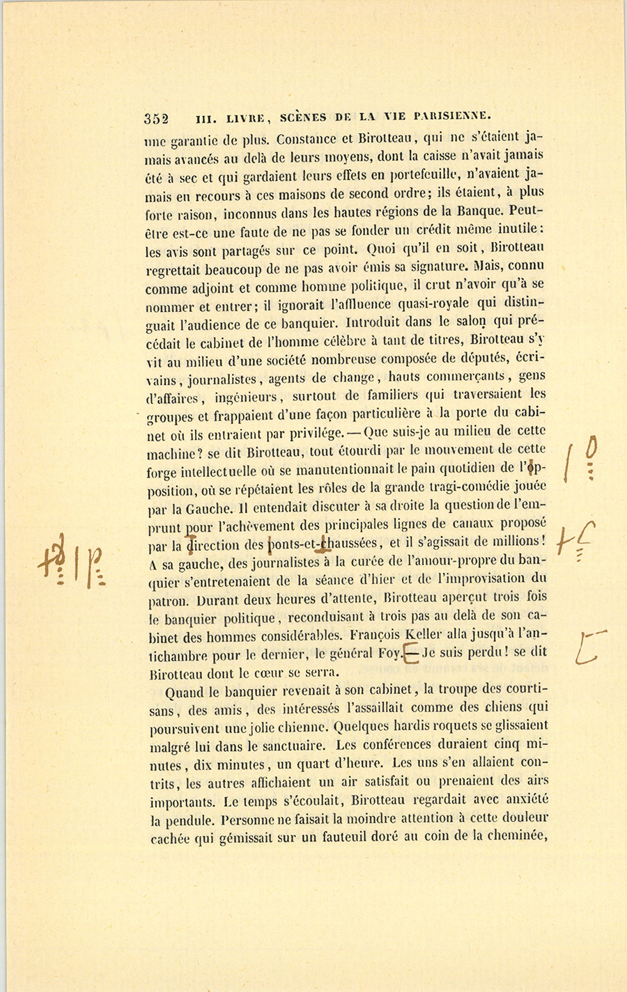 Ce jour devait être un jour de joie pour César. Le secrétaire particulier du roi, monsieur de Vandenesse, vint au Bureau lui parler. Ils sortirent ensemble dans la petite cour de la Caisse d’amortissement.