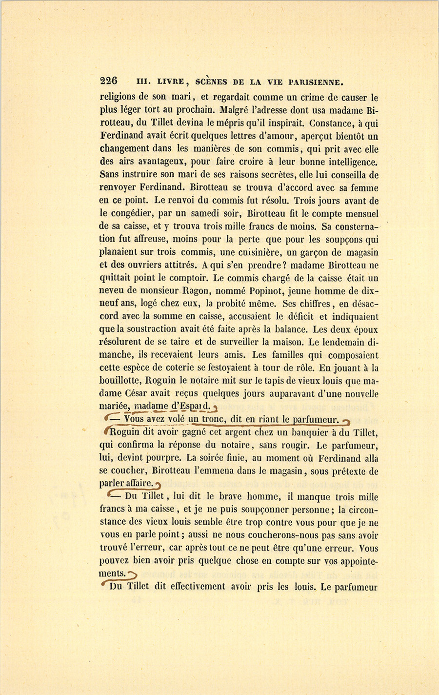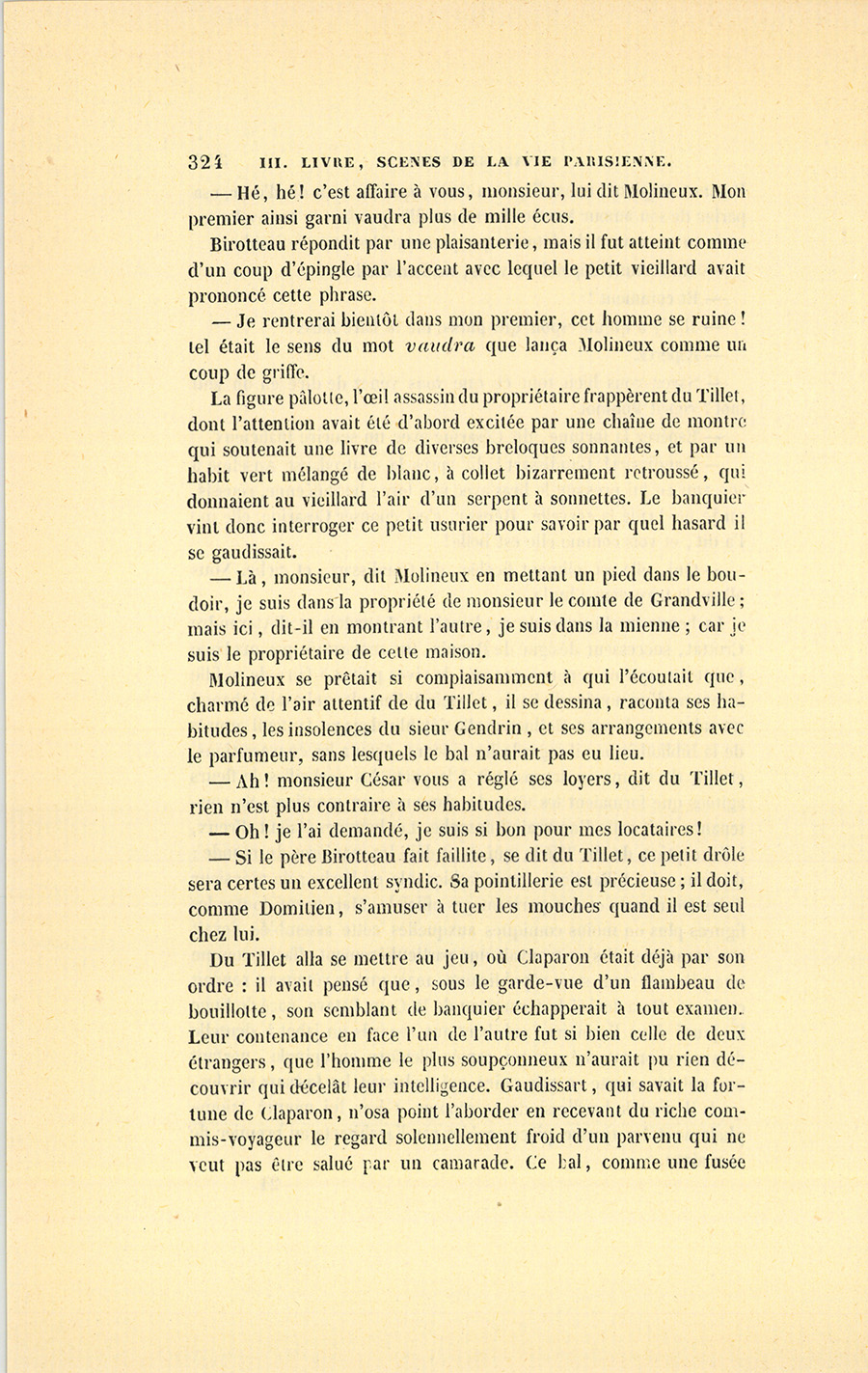 – Rien. Si tu étais en train de m’écouter ce soir, je te donnerais un bon conseil, Birotteau, ce serait de laisser ton du Tillet.