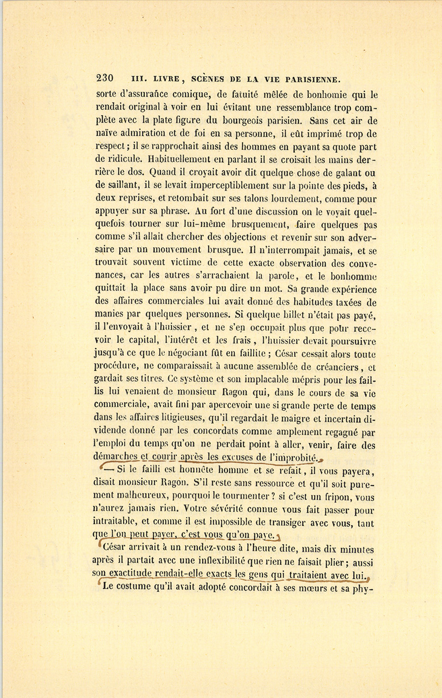 – Subtilité que tout cela, dit Pillerault, et sur les choses de probité je dois être cru. Quelle bêtise as-tu dite tout à l’heure ? auras-tu trompé tes créanciers quand tu les auras tous payés ?
