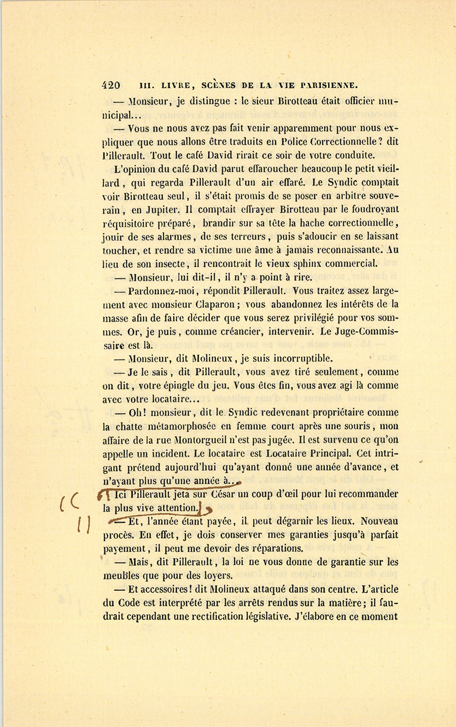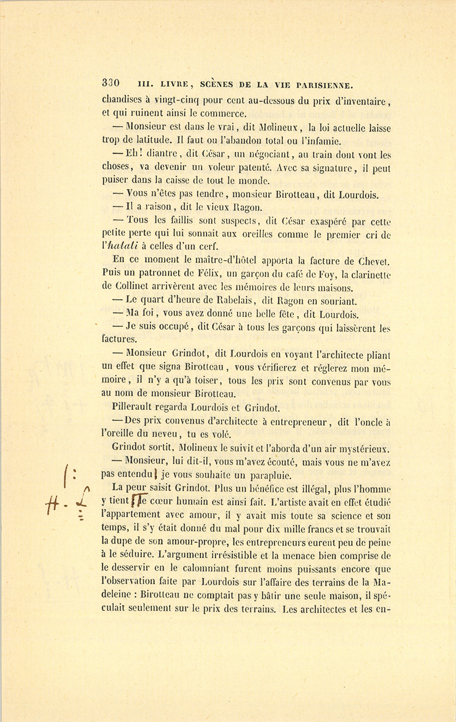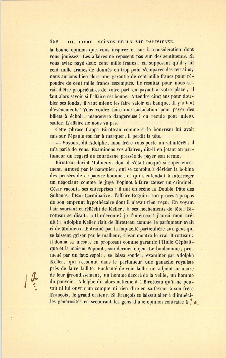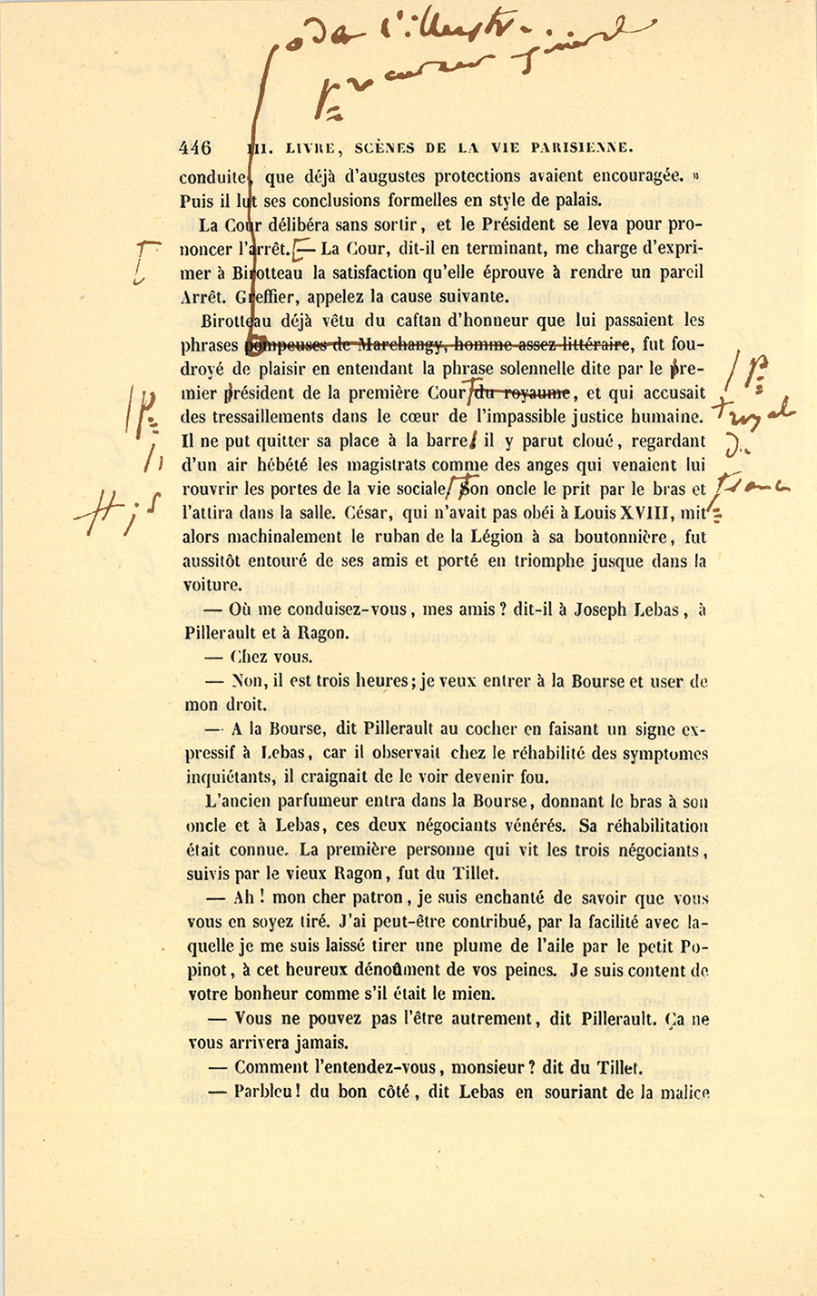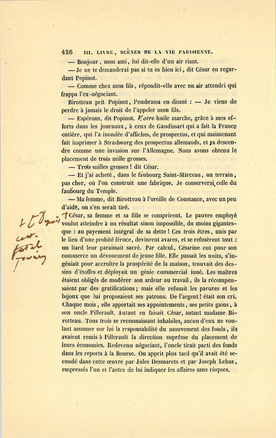 – Parbleu ! du bon côté, dit Lebas en souriant de la malice {p. 447} vengeresse de Pillerault, qui, sans rien savoir, regardait cet homme comme un scélérat.